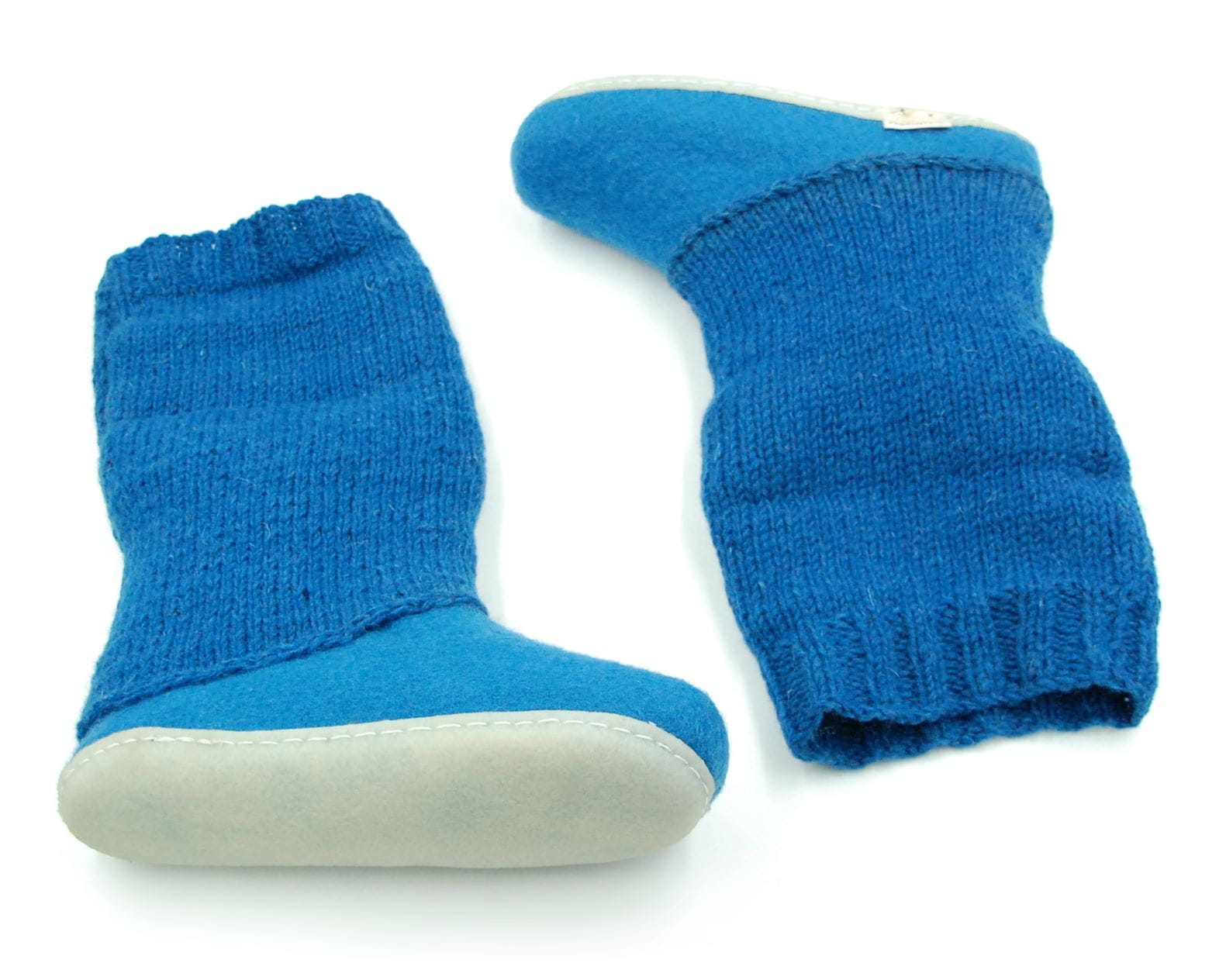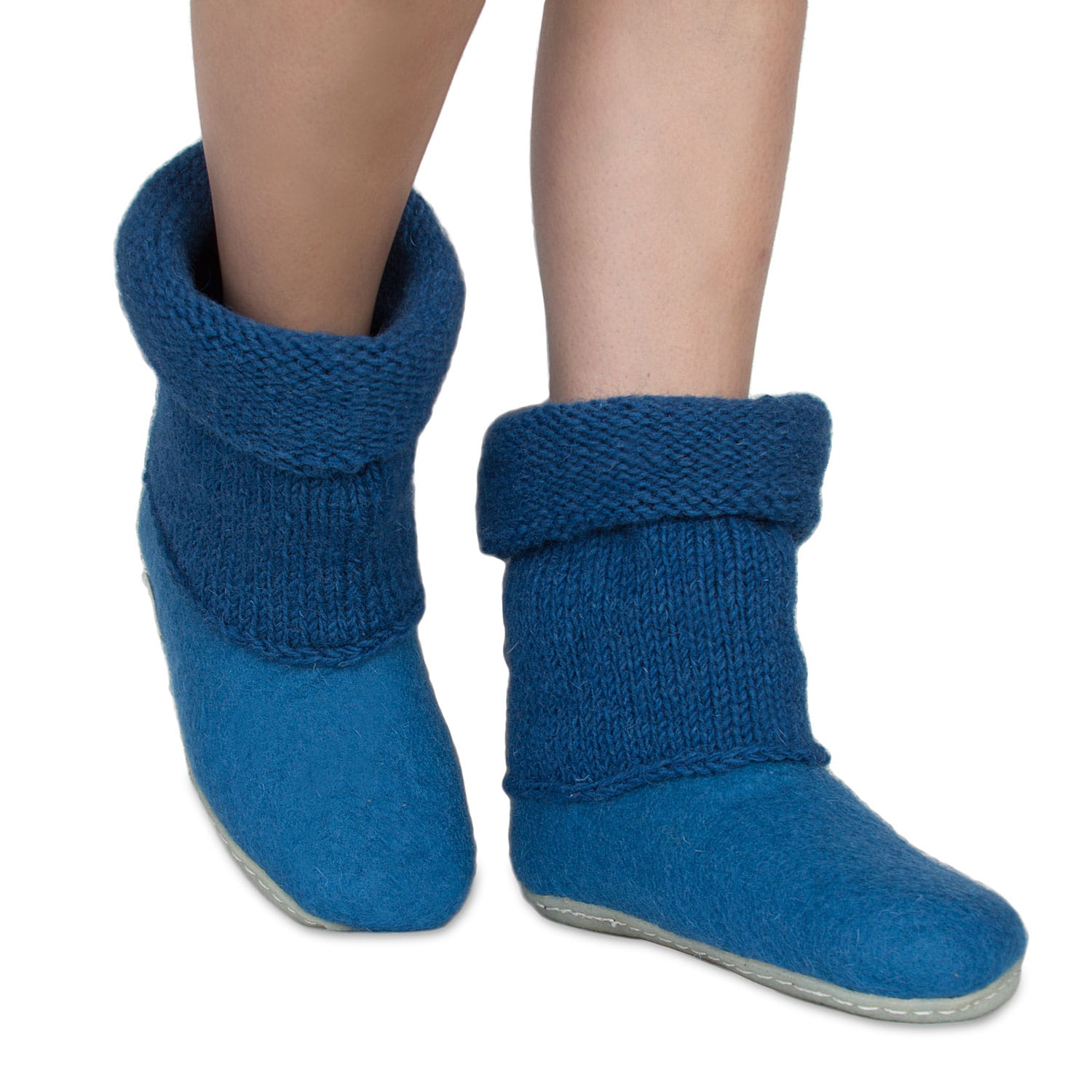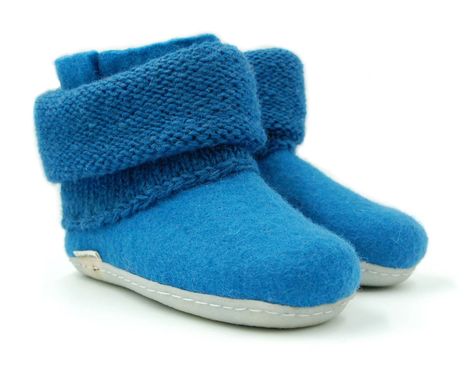 Bambosze Lazurowe z kołnierzem – papcie z wełny