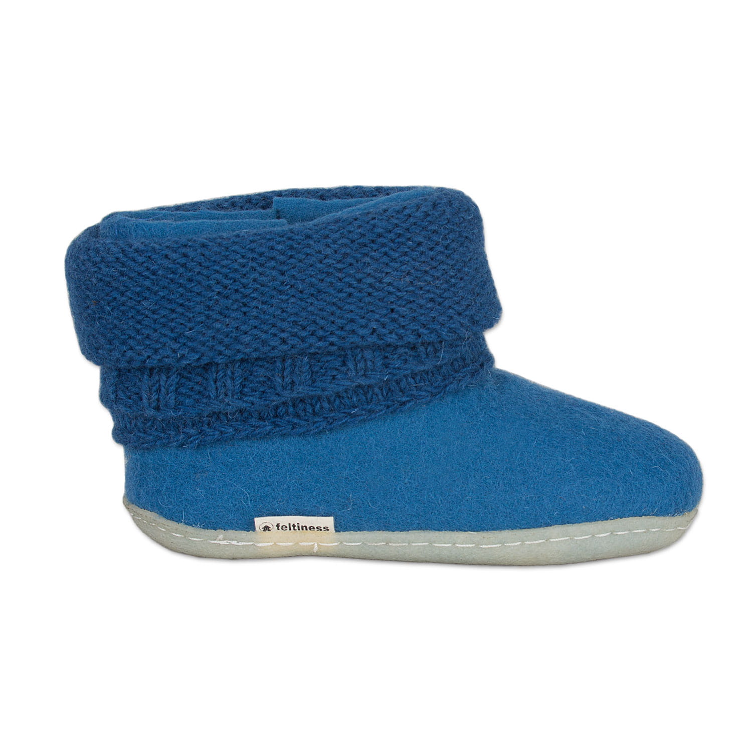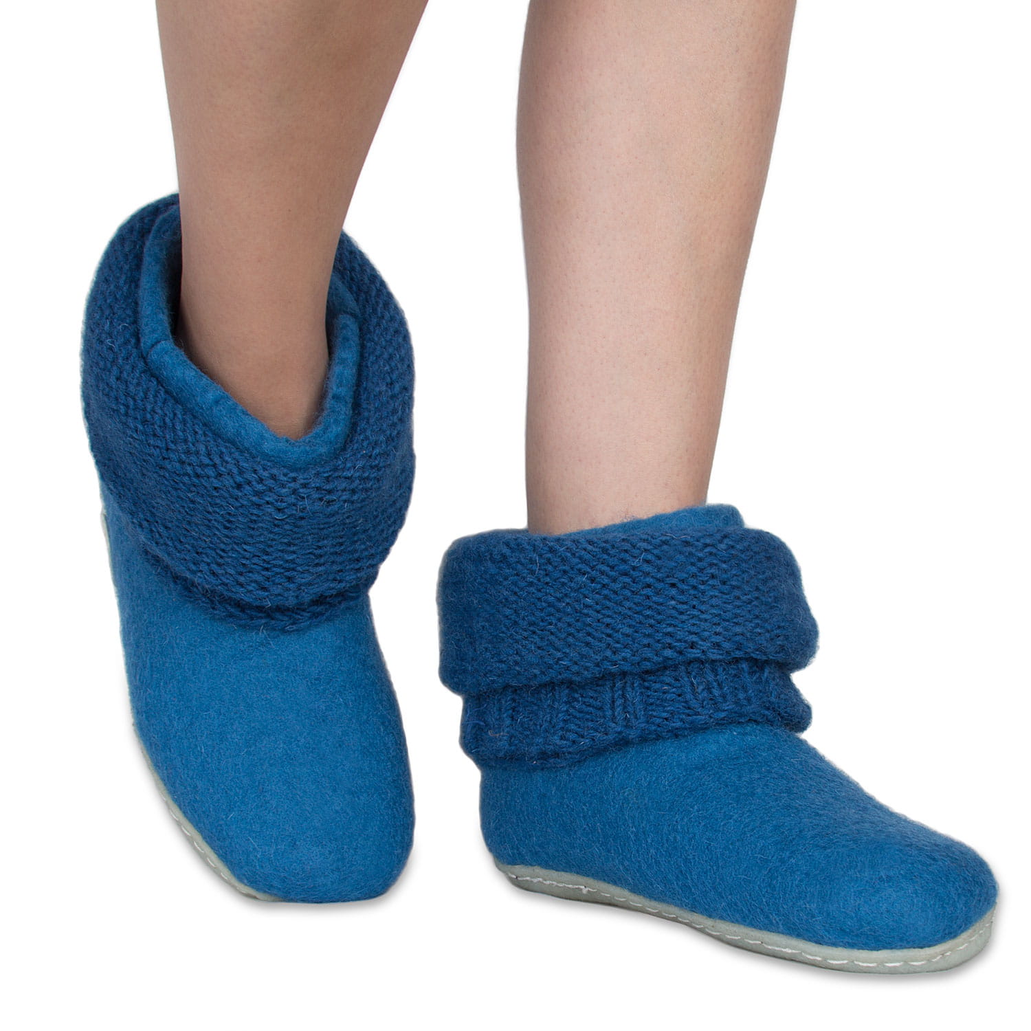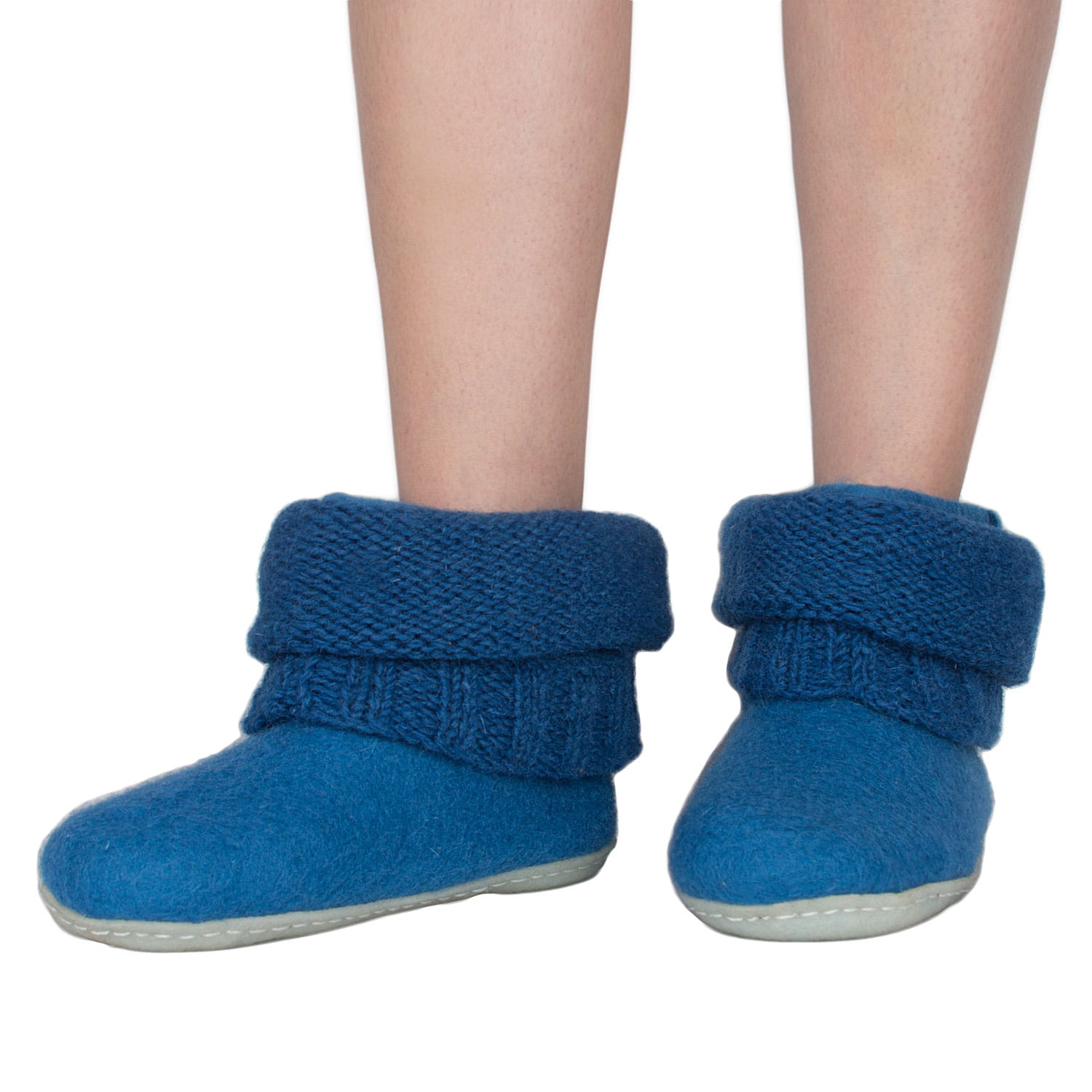 Bambosze Lazurowe z kołnierzem – papcie z wełny
