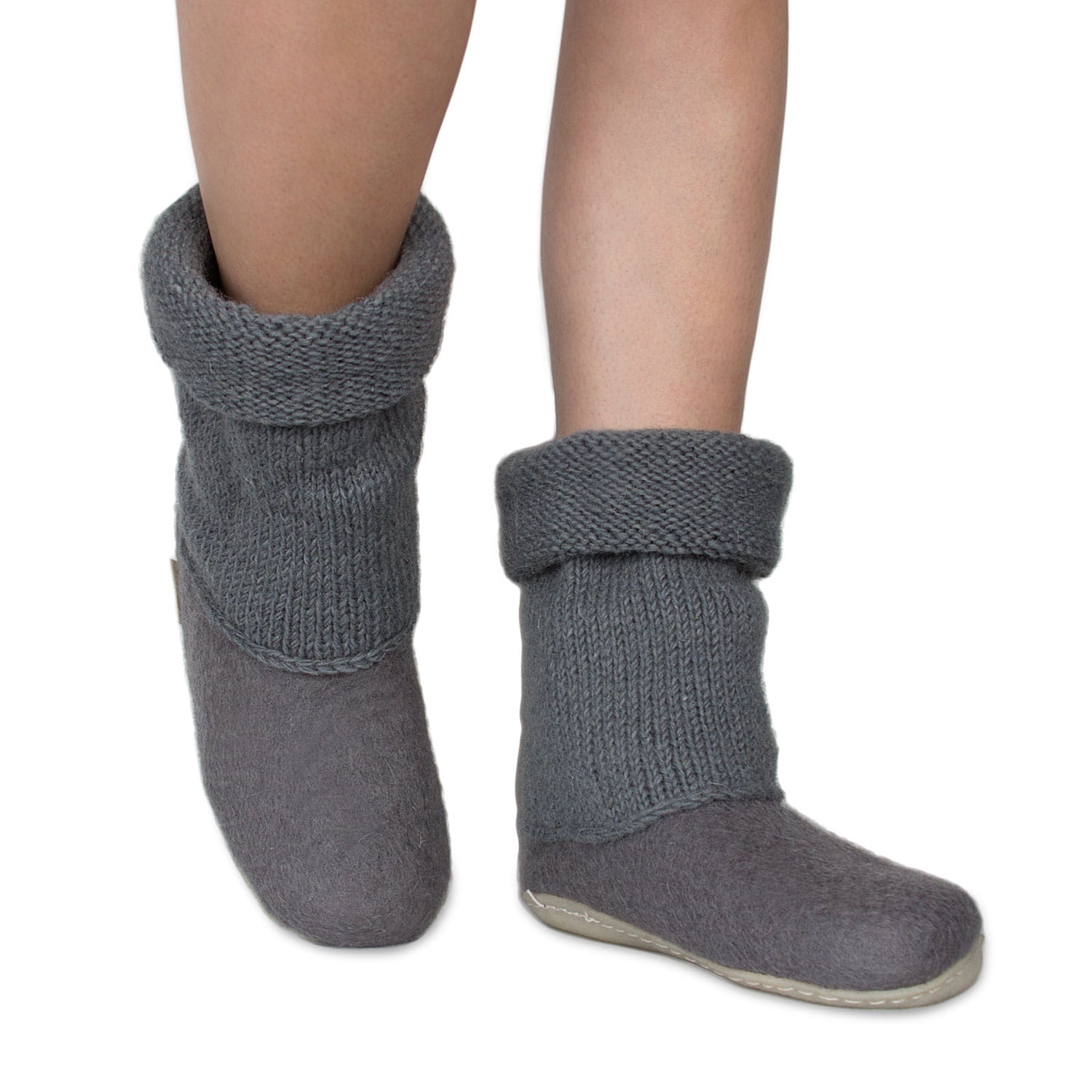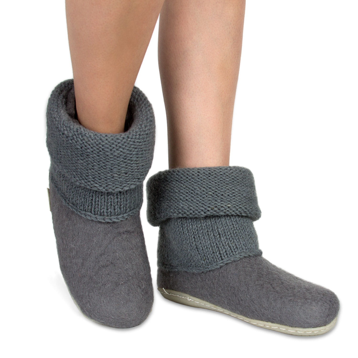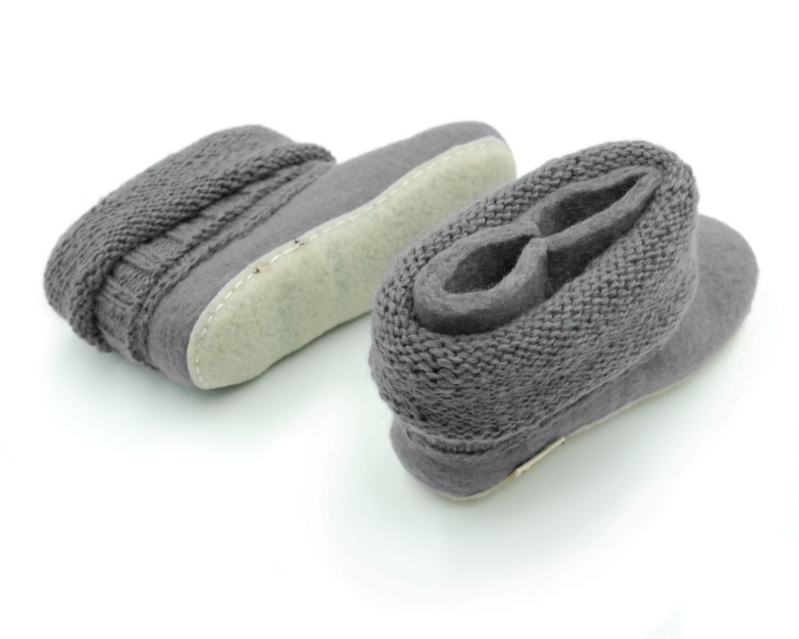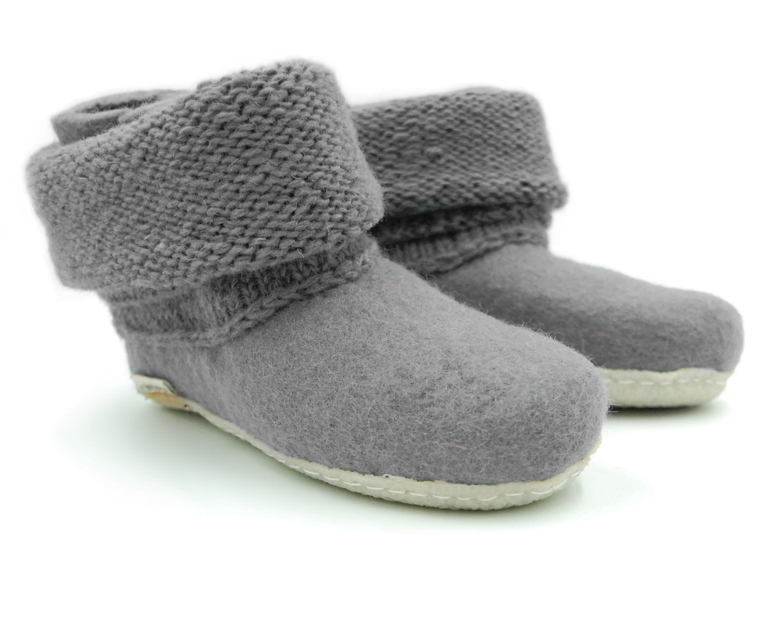 Bambosze Popielate z kołnierzem – kapcie z wełny
