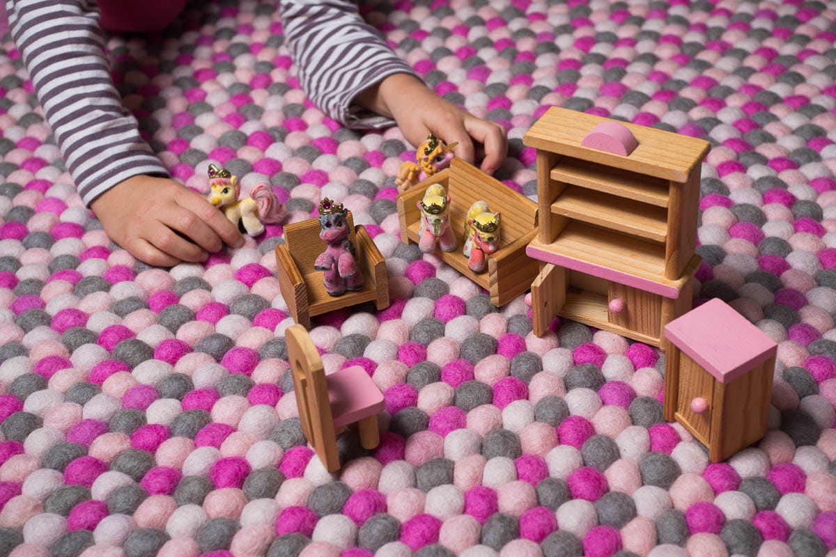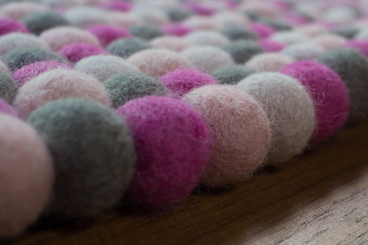 Postawienie stopy na takim dywanie to zupełnie nowe doznanie. Kulki są miłe w dotyku, a ich nieregularna powierzchnia masuje stopy. Zastosowana w nich sfilcowana wełna ociepla, wygłusza, oddycha… a przy tym jest w 100% naturalna.