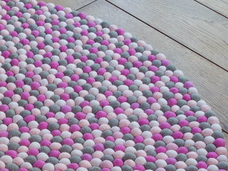 Do wykonania tego dywanu wykorzystano cztery kolory filcowych kulek.