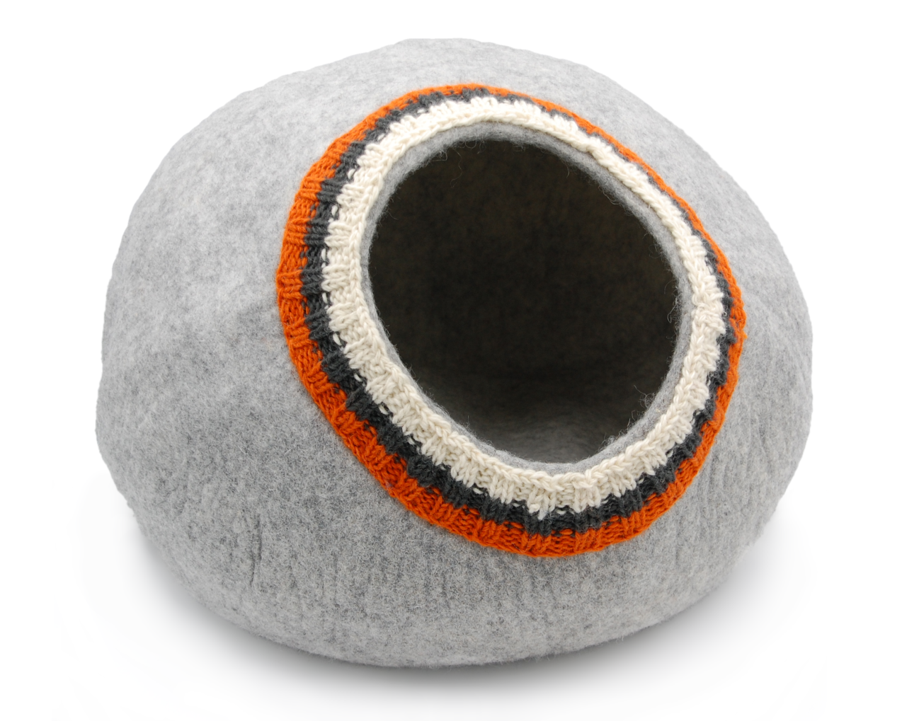 Filcowy kojec dla kota – kamyk wykonany ręcznie w Nepalu. Posłanie formowane jest na mokro w 100% z naturalnej owczej wełny. Duże wymiary i odpowiednia średnica otworu pozwolą wygodnie korzystać z kojca wszystkim leniuchującym kotom. Oprócz praktycznego wykorzystania przez Twojego pupila posłanie może dostosować się jak i podkreślić wnętrze. Ciekawa forma pozwala postawić je nawet w najbardziej reprezentacyjnym miejscu 🙂