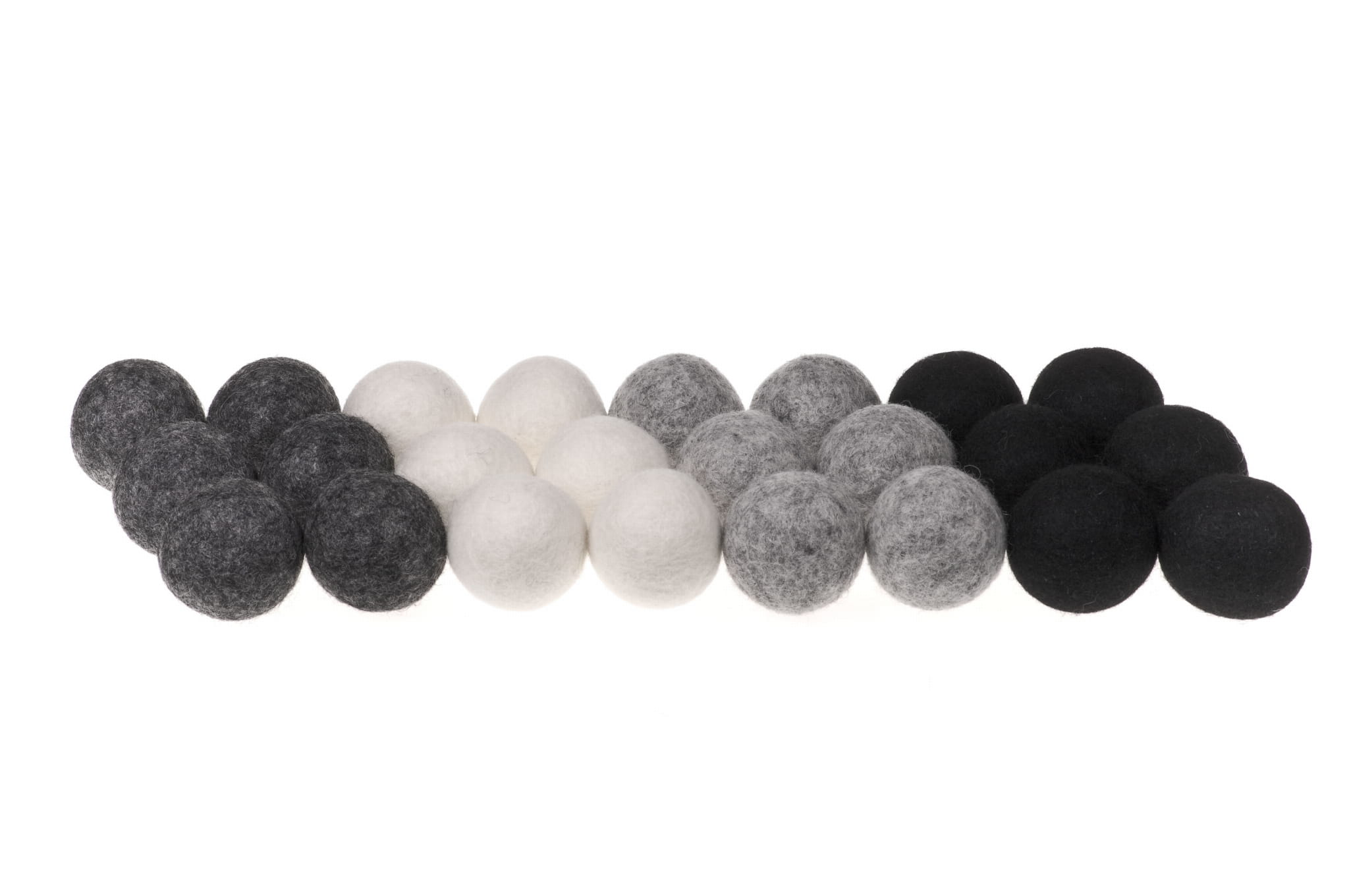 Kulki filcowe z Nepalu. Wykonane ręcznie z jednego z najstarszych wyrobów włókienniczych – filcu. Używany do produkcji filc powstaje w 100% z czystej, owczej wełny. Oferowane kulki mają ok. 4 cm średnicy. Cena za 1 szt.