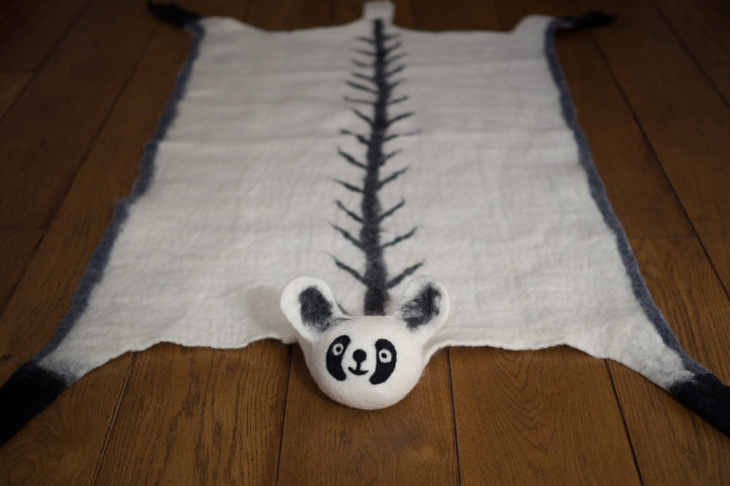 Filcowy dywanik – mata z Nepalu. Wykonany ręcznie z jednego z najstarszych wyrobów włókienniczych – filcu. Używany do produkcji filc pochodzi w 100% z czystej, owczej wełny. Mata formowana jest na mokro a następnie suszona na wolnym powietrzu. Dywaniki powstają bez maszyn, szablonów czy dokładnych projektów – wyłącznie dzięki niezwykłym umiejętnościom, doświadczeniu i wrażliwości ludzi którzy je tworzą. Dzięki temu są niepowtarzalne. Dywaniki świetnie sprawdzają się w pokojach dziecięcych i sypialniach. Mogą również stać się zabawką. Dzieci z pewnością znajdą dla nich masę nowych zastosowań. Skład: 100% owcza wełna.