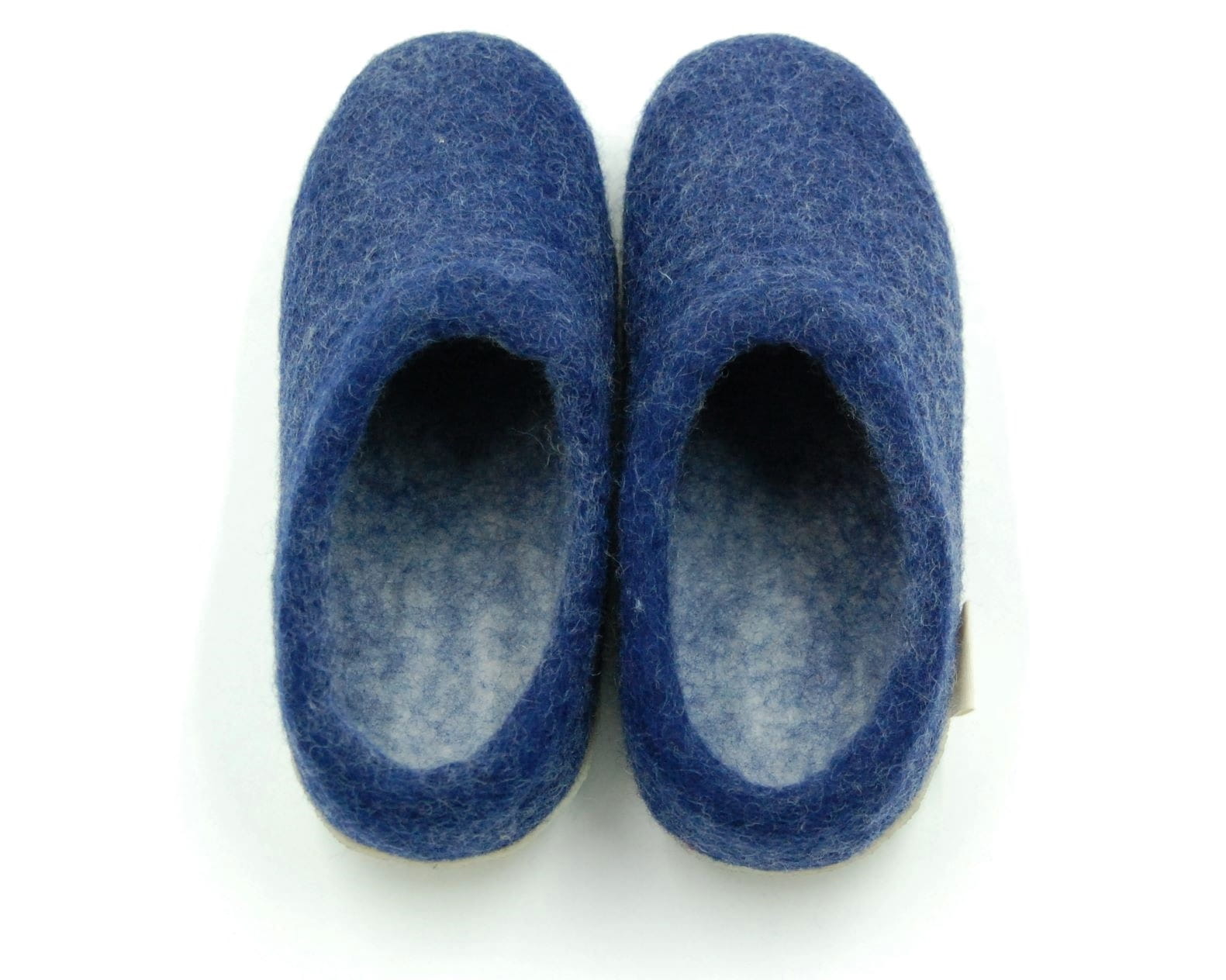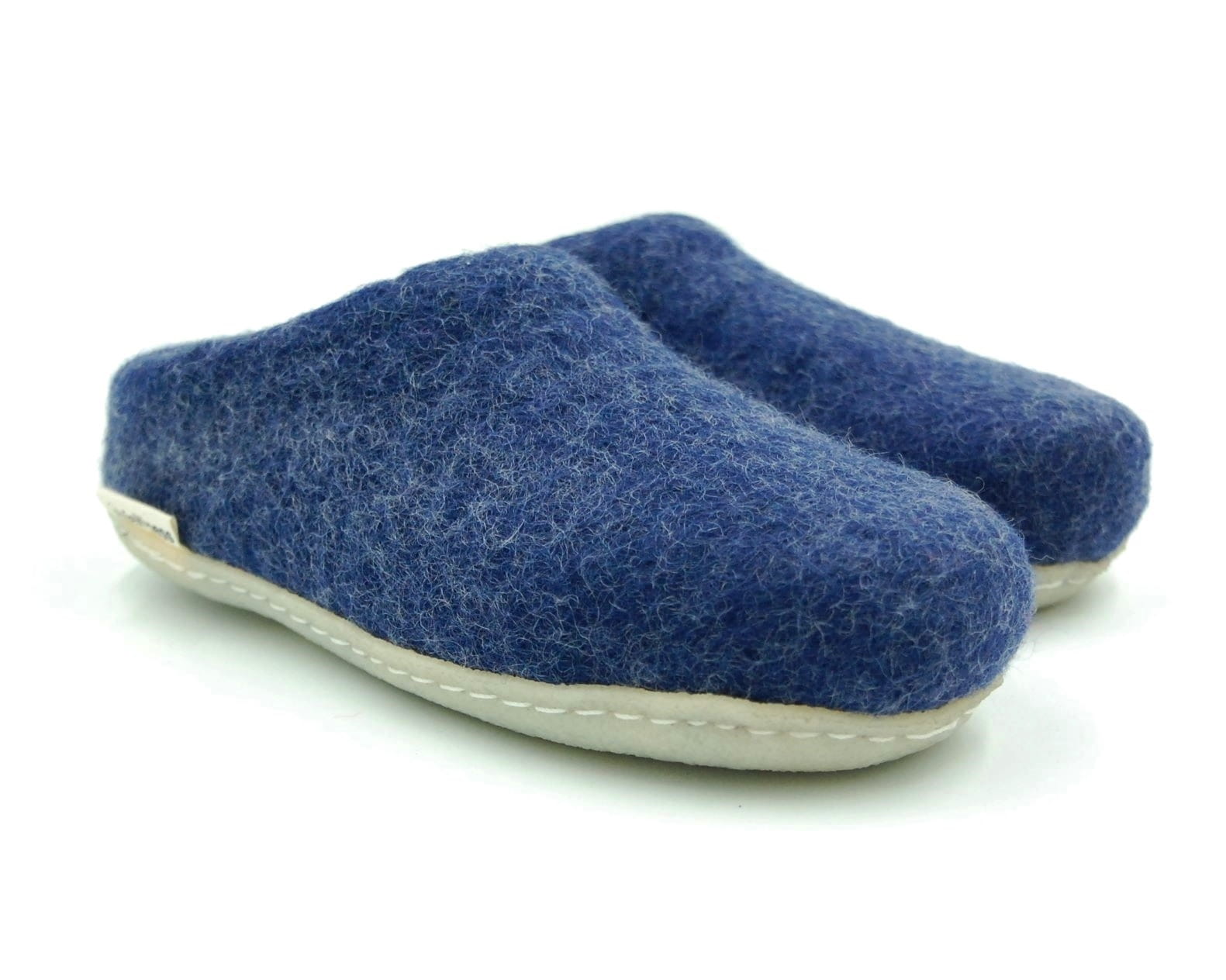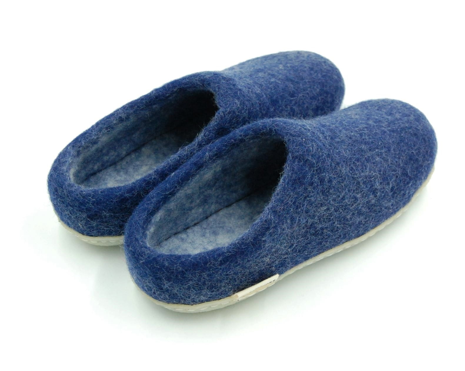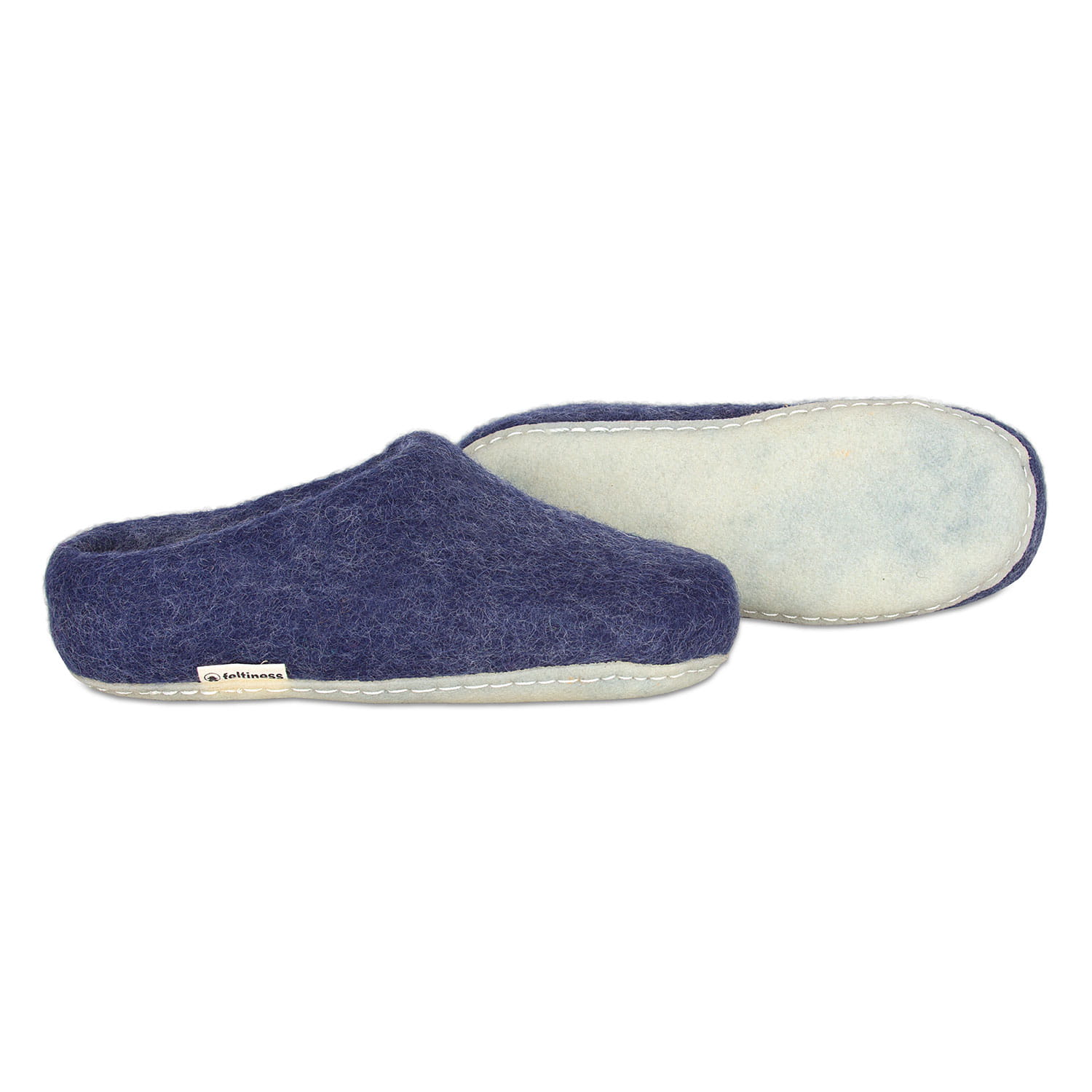 Paputy Granatowe z podeszwą kauczukową – kapcie wełniane