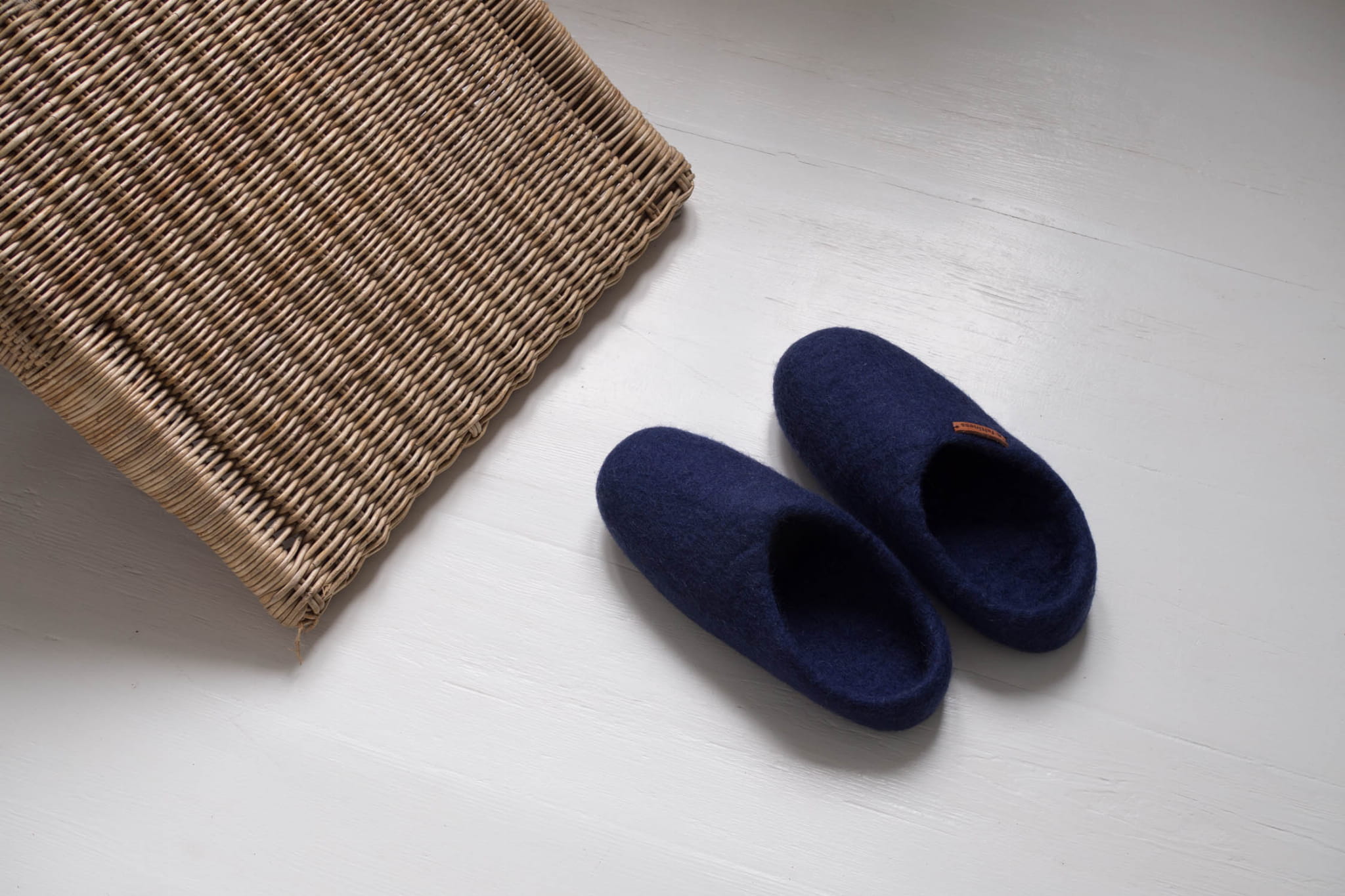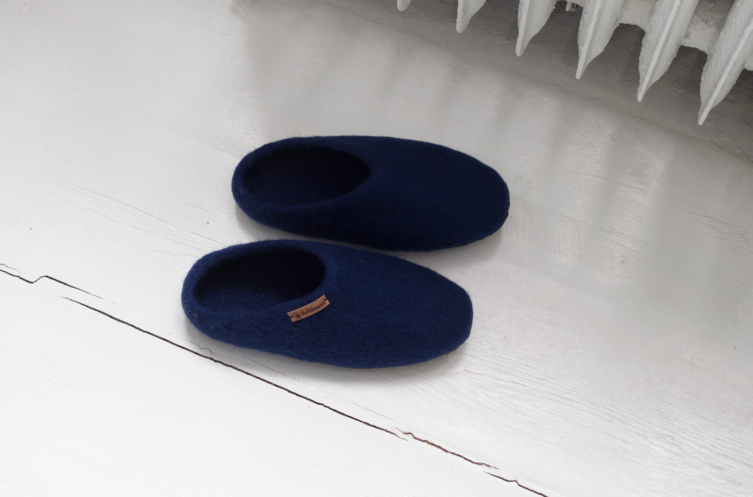 28 opinii dla Paputy Granatowe z podeszwą – papcie wełniane