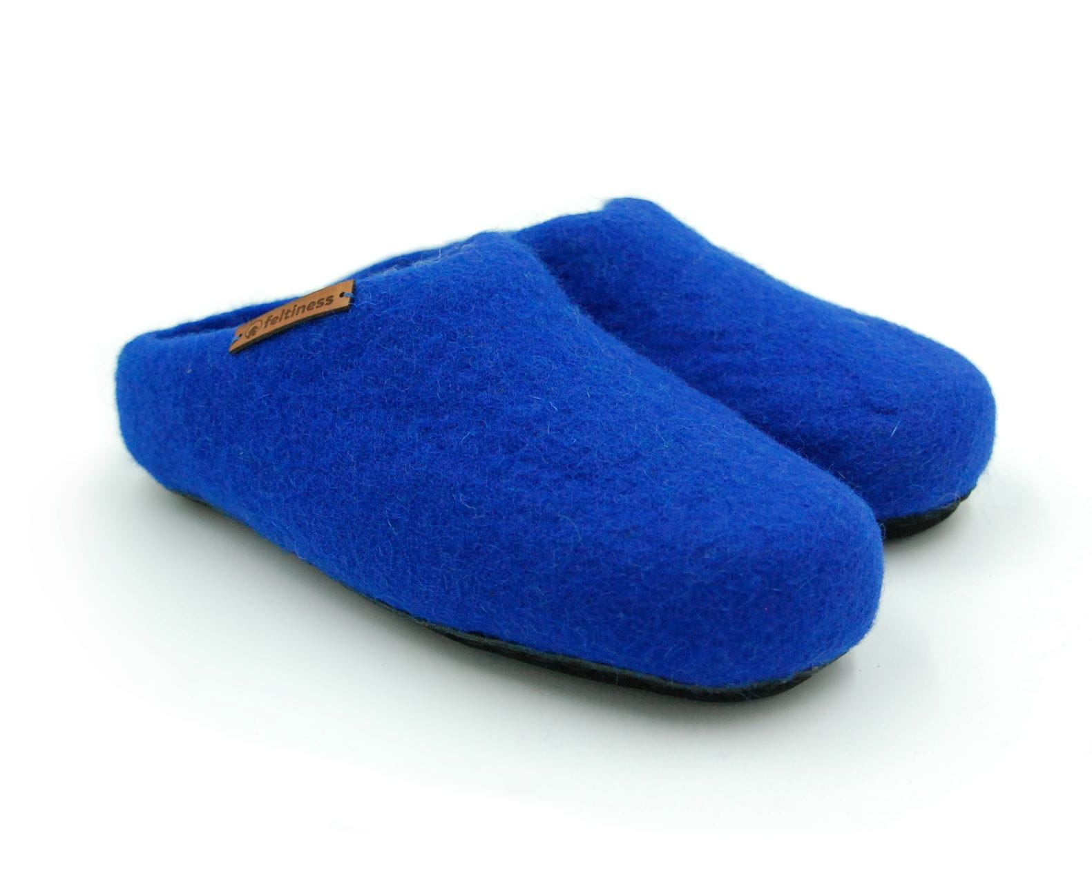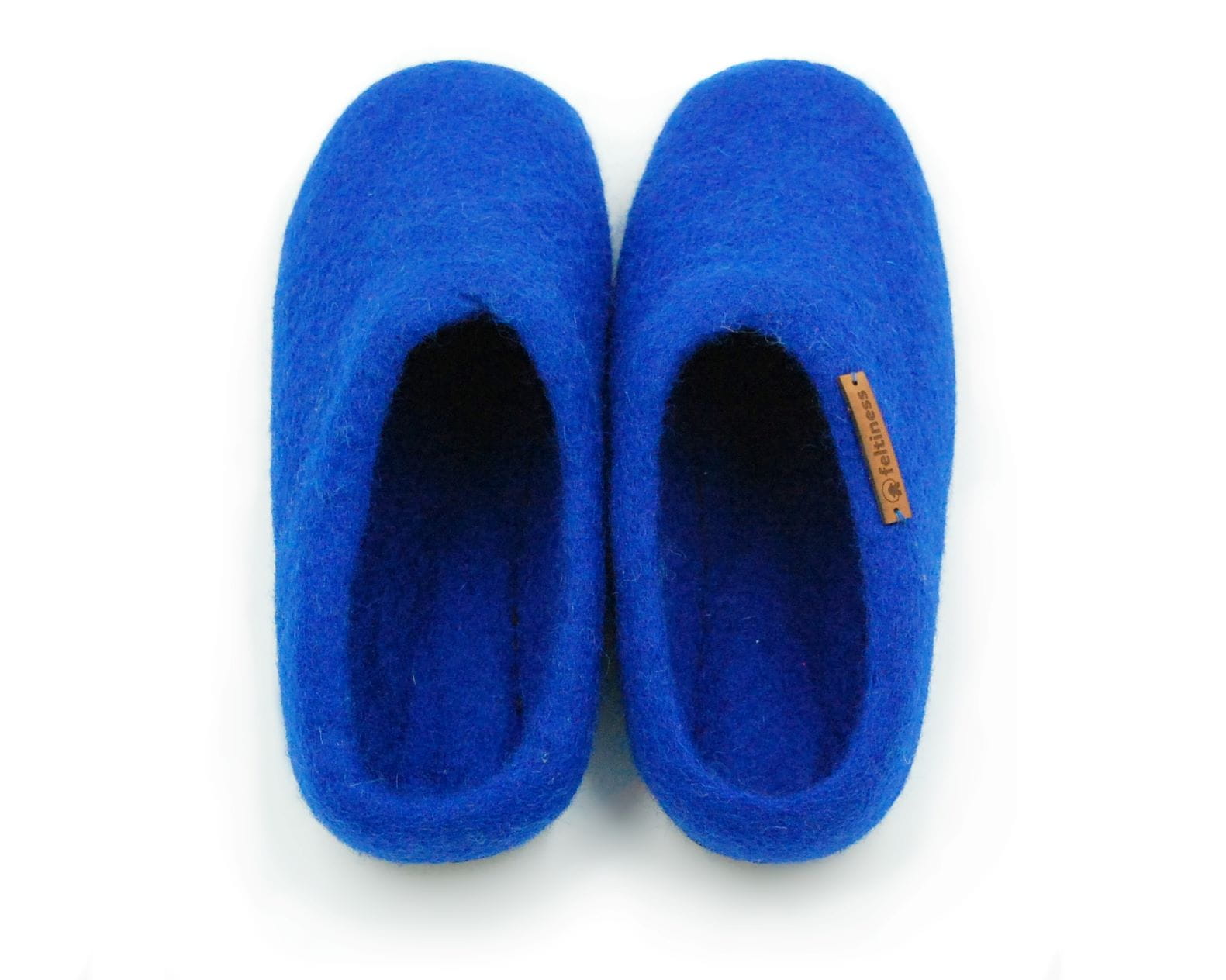 Paputy Niebieskie z podeszwą – kapcie wełniane