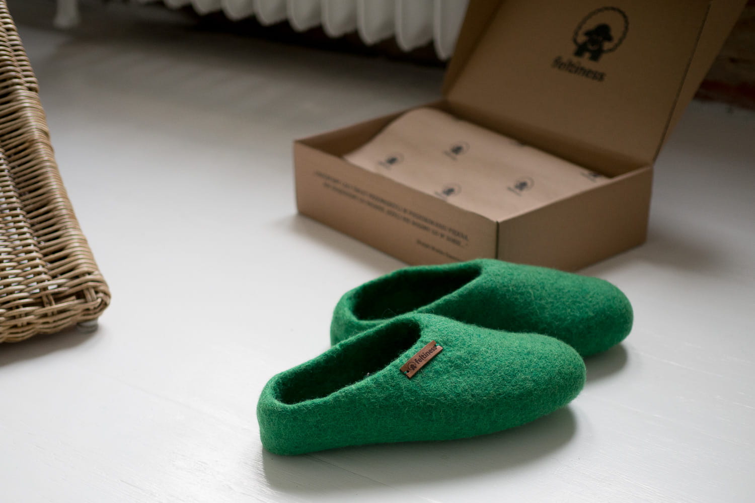 Paputy Zielone – kapcie wełniane