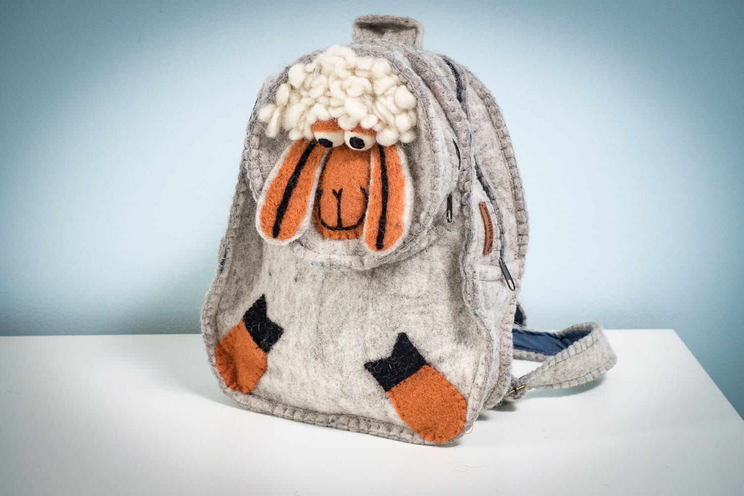 Przepiękny dziecięcy plecak wykonany ręcznie w Nepalu z filcowanej, owczej wełny.