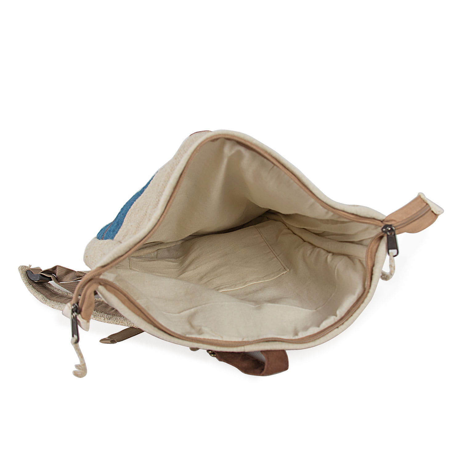 Plecak wykonany ręcznie w Nepalu z naturalnych włókien: konopi himalajskich oraz mocnej bawełny. Regulowane paski na ramiona. U góry rączka do wygodnego przenoszenia. Główna komora zamykana na zamek jest wystarczająco duża żeby pomieścić podręczniki, laptop ale także wszystko co potrzeba na weekendową wycieczkę. Dodatkowe kieszonki ułatwią organizację i przenoszenie mniejszych przedmiotów. Ten oryginalny i kolorowy plecak świetnie sprawdzi się na co dzień ale także na wycieczki. Plecak wykonany jest w nepalskiej manufakturze z naturalnych materiałów zgodnie z zasadami Fair Trade.