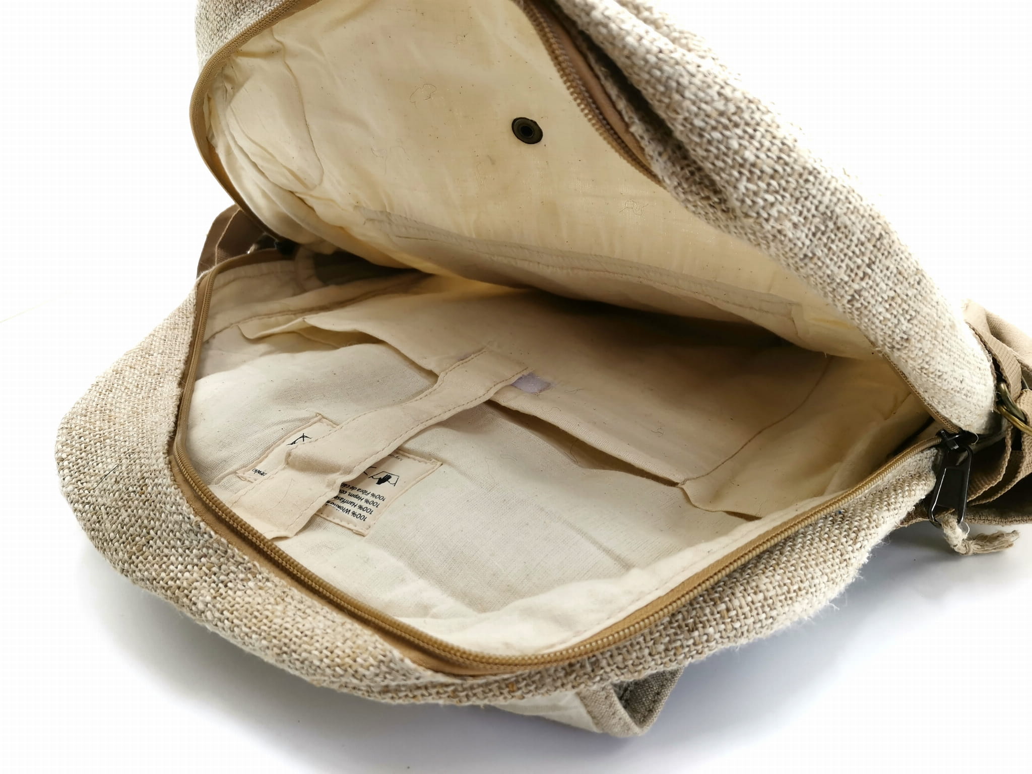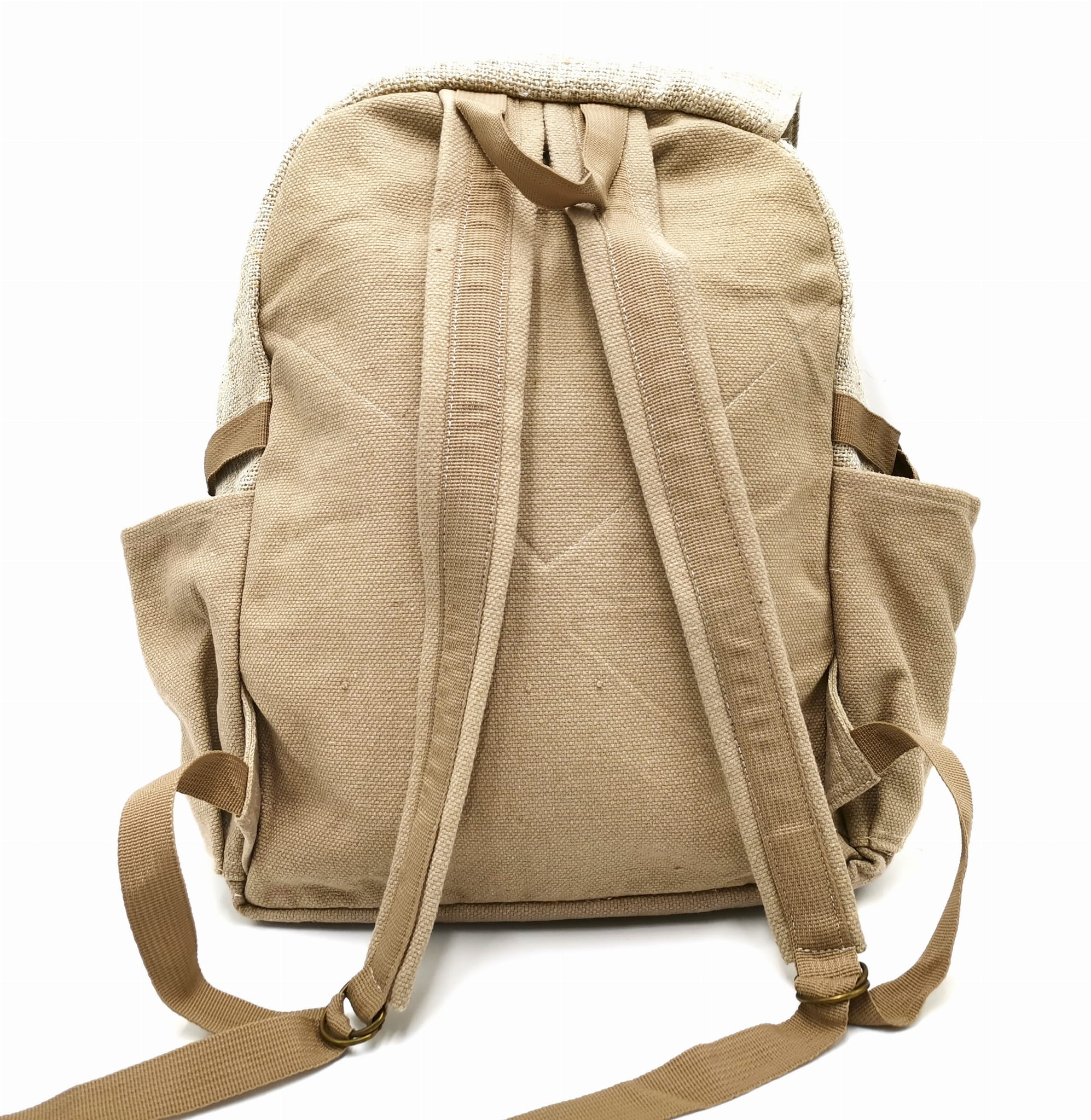 Plecak wykonany ręcznie w Nepalu z naturalnych włókien: konopi himalajskich oraz mocnej bawełny. Regulowane paski na ramiona. U góry rączka do wygodnego przenoszenia. Główna komora zamykana na zamek jest wystarczająco duża żeby pomieścić podręczniki, laptop ale także wszystko co potrzeba na weekendową wycieczkę. Dodatkowe kieszonki ułatwią organizację i przenoszenie mniejszych przedmiotów. Na zewnątrz po bokach plecaka dwie kieszenie na sprzęt podręczny, butelkę wody czy parasol. Ten oryginalny i kolorowy plecak świetnie sprawdzi się na co dzień ale także na wycieczki. Plecak wykonany jest w nepalskiej manufakturze z naturalnych materiałów zgodnie z zasadami Fair Trade. Wymiary 38 x 45 cm.