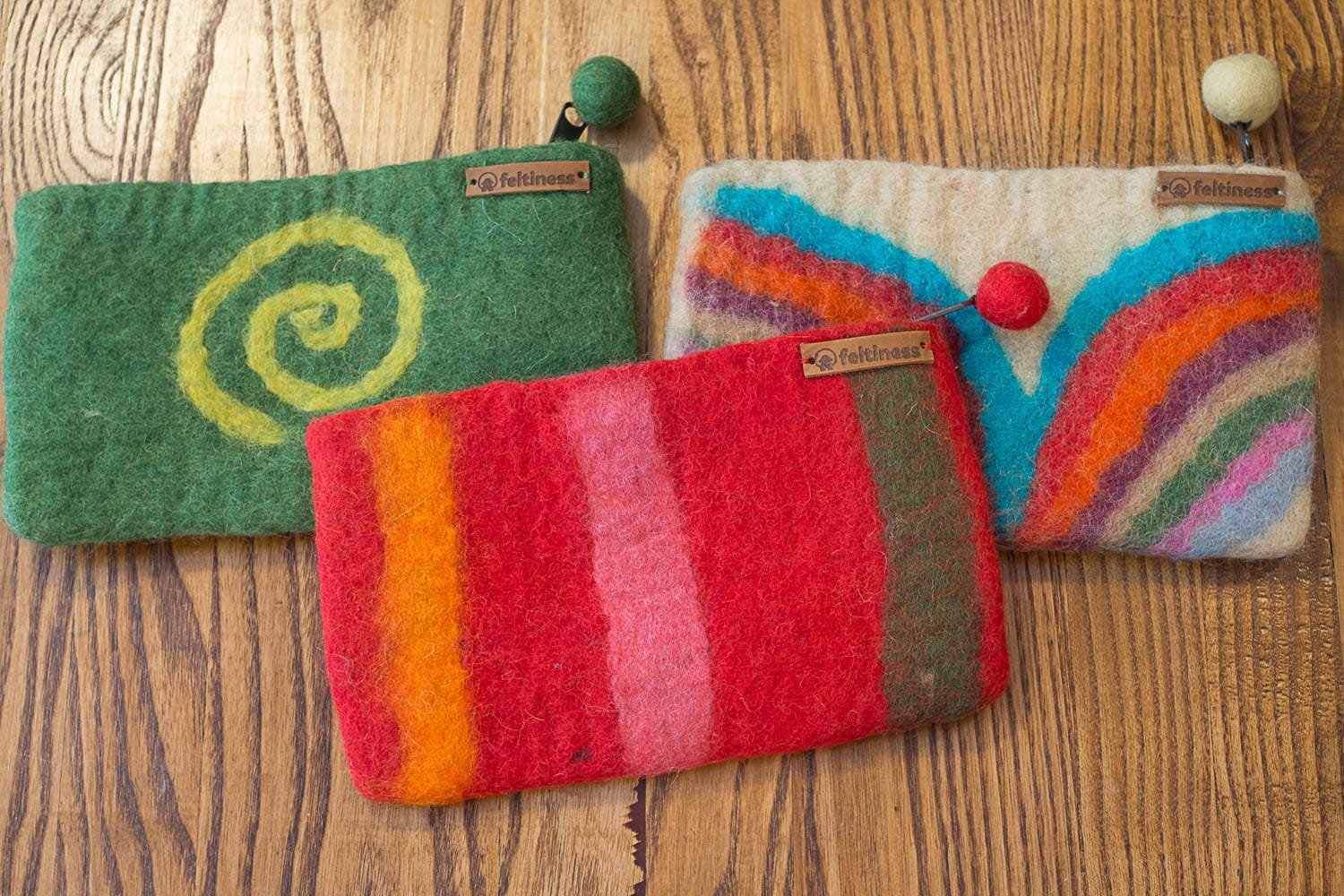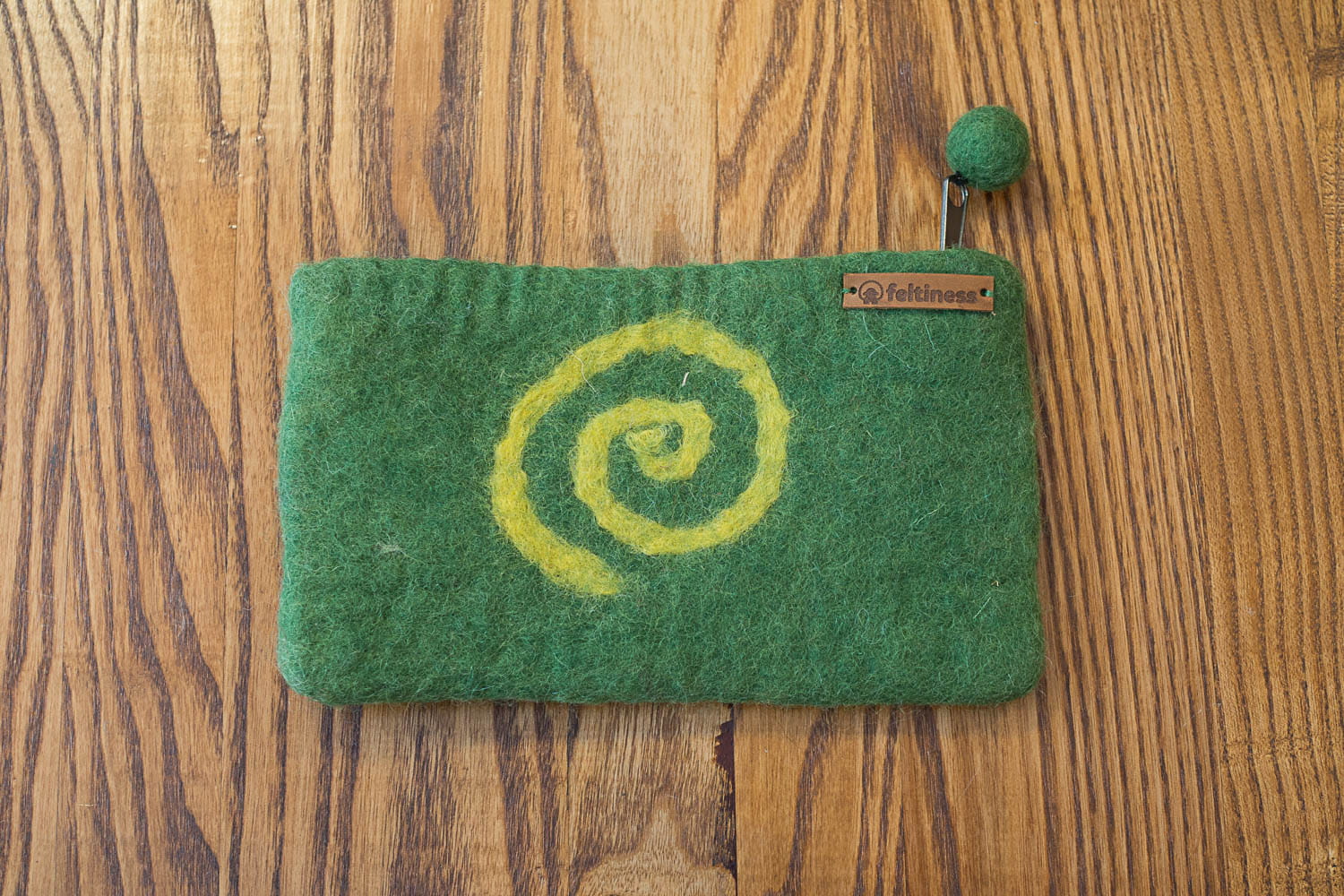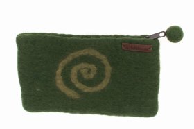 Oryginalny etui / piórnik wykonany ręcznie w Nepalu z naturalnie filcowanej 100% owczej wełny. Zamykany na zamek błyskawiczny. Wnętrze wykończone bawełnianą podszewką.