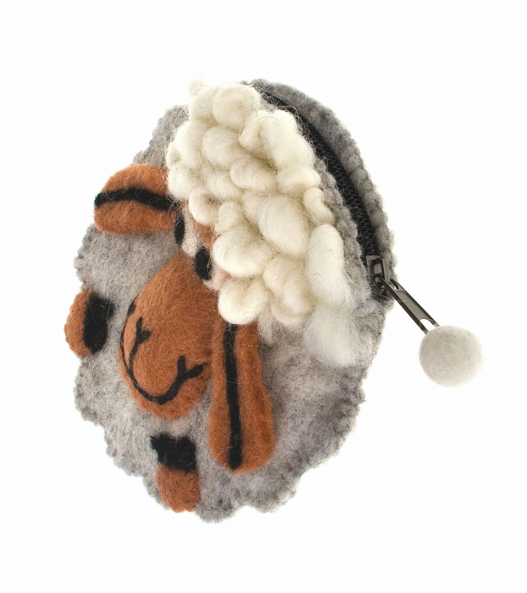 Oryginalny portfel wykonany ręcznie w Nepalu z naturalnie filcowanej 100% owczej wełny. Zamykany na zamek błyskawiczny. Wnętrze wykończone bawełnianą podszewką.