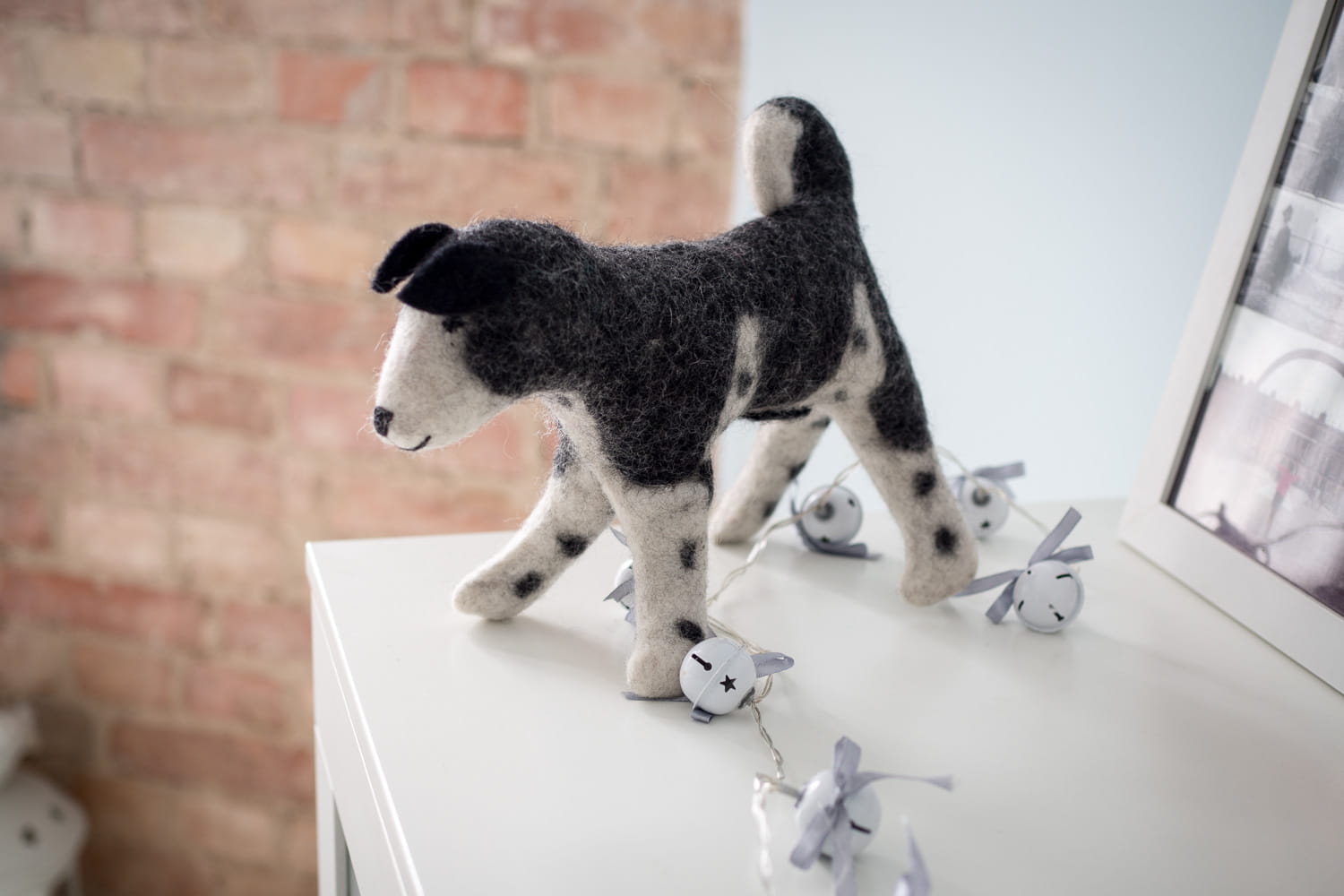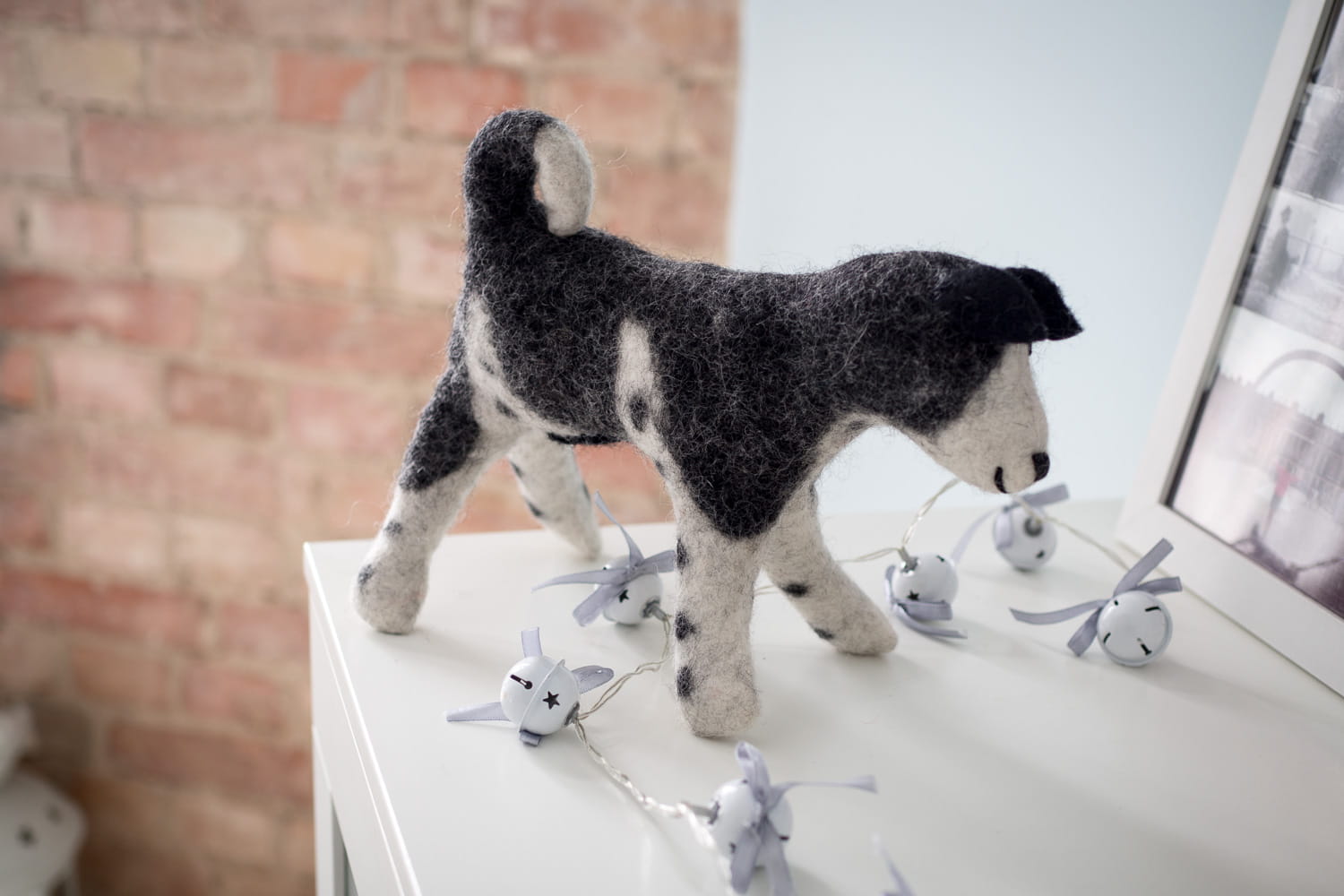 Psiak wykonany ręcznie w Nepalu, z sfilcowanej owczej wełny. W 100 % naturalny. Niezastąpiony przyjaciel dzieci, który z przyjemnością wypełni swoim ciepłem każdy dziecięcy pokój. Psiak mierzy 17 cm wysokości.