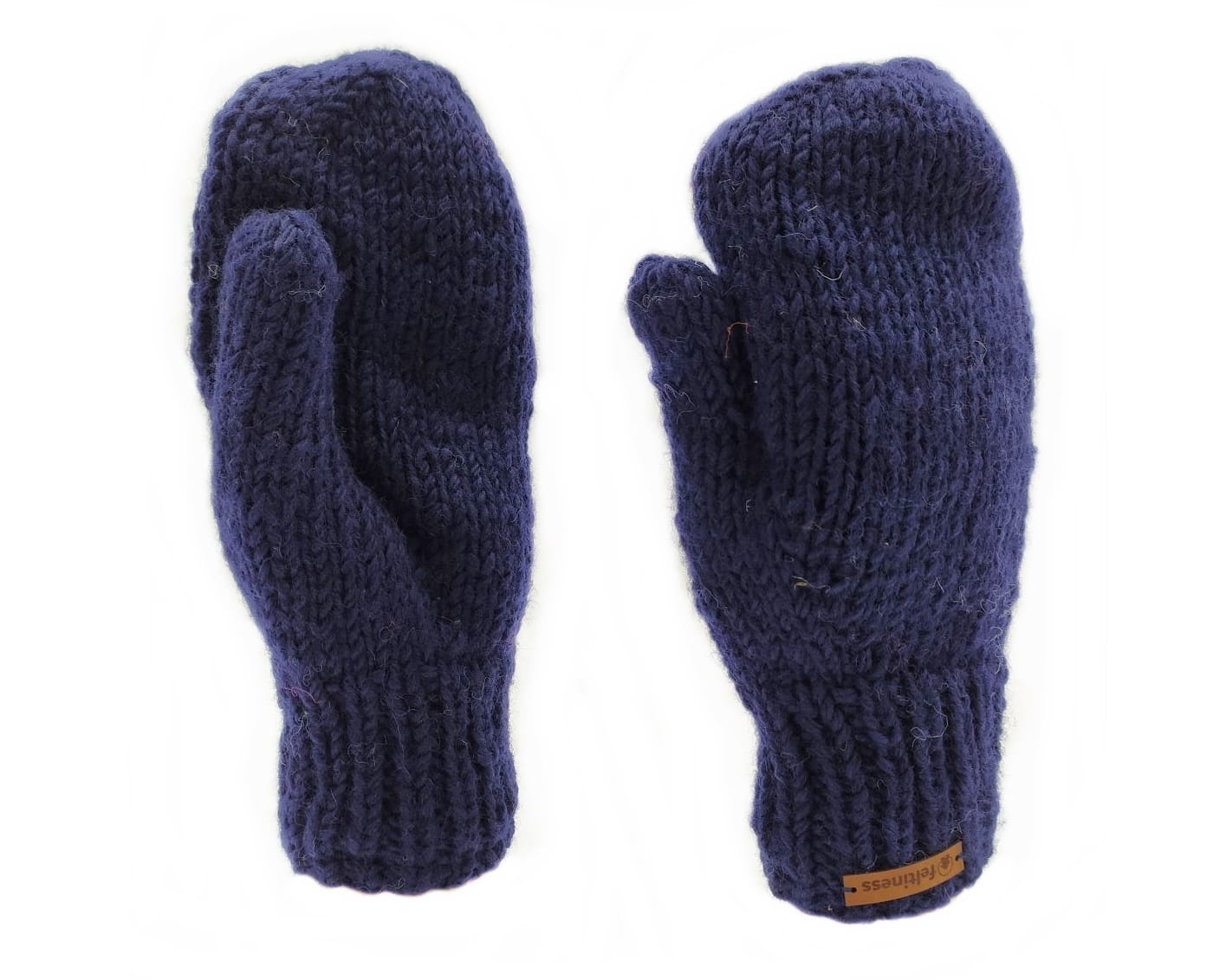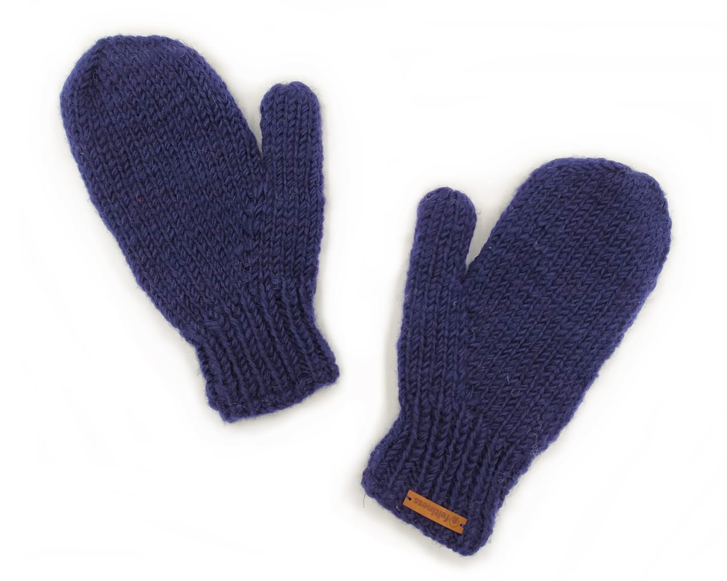 Ciepłe, granatowe rękawice z jednym palcem. Wykonane ręcznie w Nepalu przez tamtejszą etniczną społeczność. Produkt jest w pełni naturalny, wytworzony z owczej wełny. Podszewka wykonana została z polaru, co potęguje ich zdolność ochrony przed chłodem. Rękawice odznaczają się dużą jakością wykonania. Kolor uzyskano używając naturalnych i wolnych od chemii substancji. Doskonale zdają egzamin w mroźne dni, zapewniając dłoniom odpowiednie ciepło. Miękkie i miłe w dotyku, nie posiadają typowej dla wełny gryzącej przypadłości.