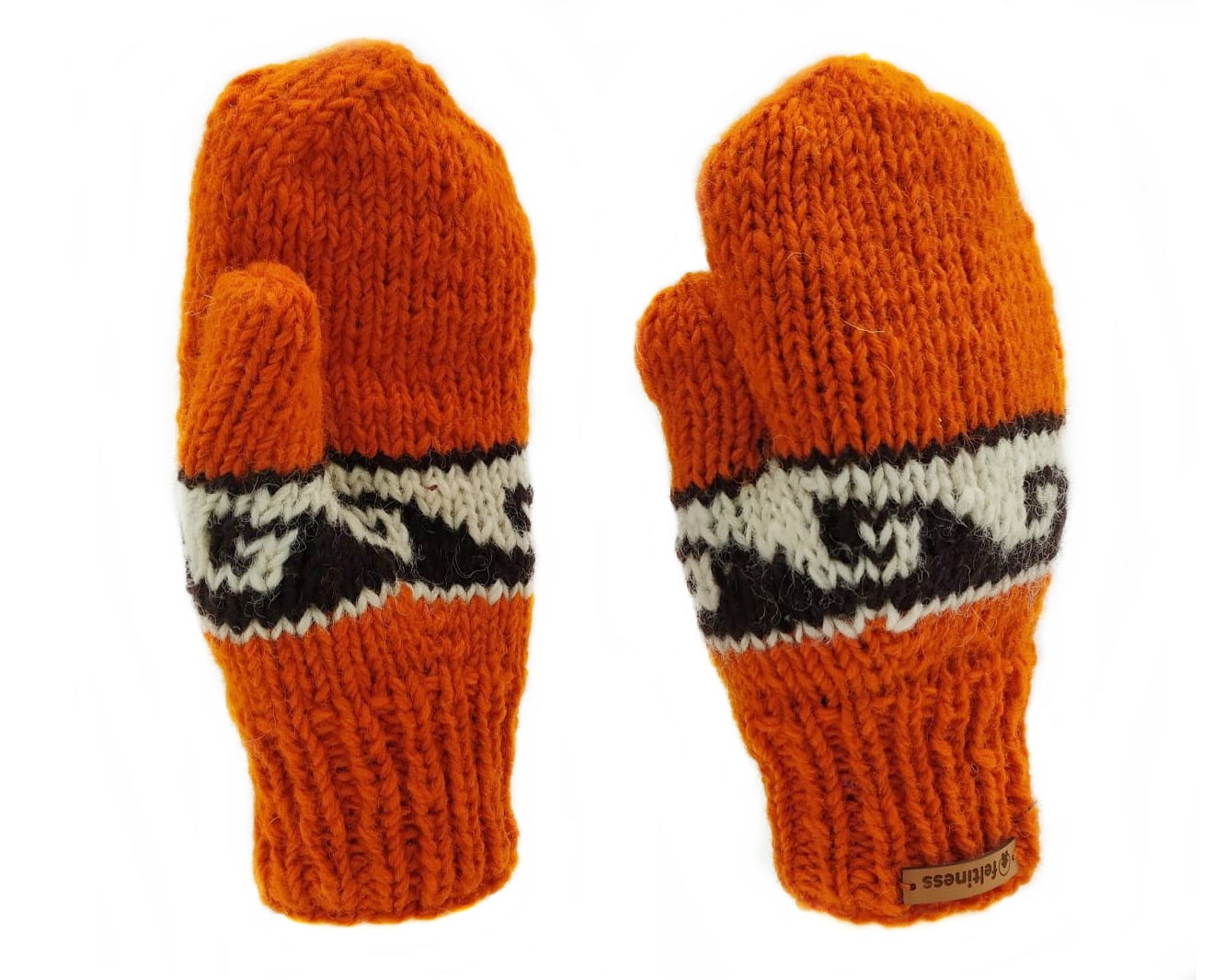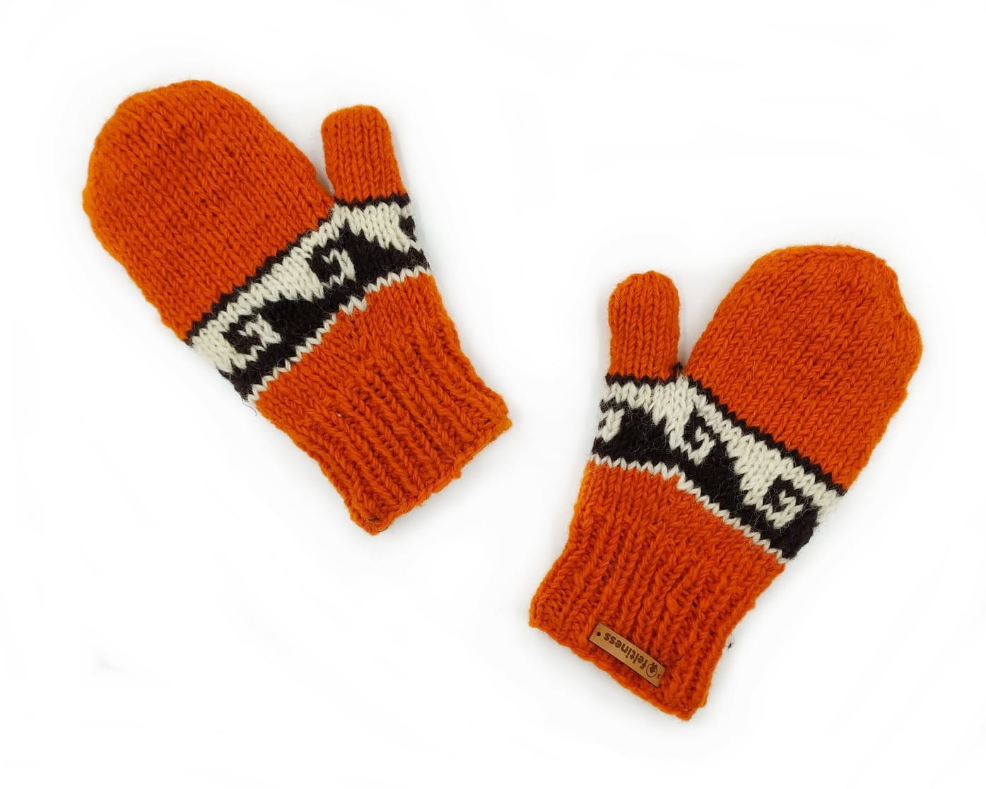 Ciepłe, pomarańczowe rękawice z jednym palcem. Wykonane ręcznie w Nepalu przez tamtejszą etniczną społeczność. Produkt jest w pełni naturalny, wytworzony z owczej wełny. Podszewka wykonana została z polaru, co potęguje ich zdolność ochrony przed chłodem. Rękawice odznaczają się dużą jakością wykonania. Kolor uzyskano używając naturalnych i wolnych od chemii substancji. Doskonale zdają egzamin w mroźne dni, zapewniając dłoniom odpowiednie ciepło. Miękkie i miłe w dotyku, nie posiadają typowej dla wełny gryzącej przypadłości.