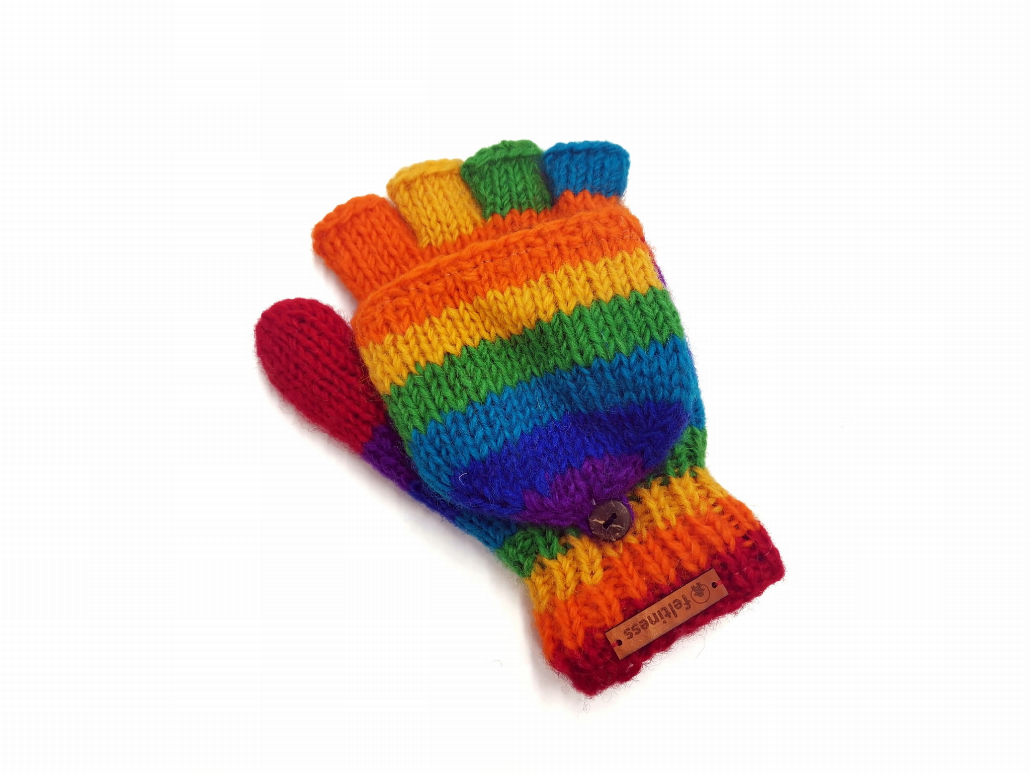 Wełniane rękawiczki bez palców. Posiadają klapkę zamykaną na guzik, którą w razie potrzeby możesz osłonic odkryte końcówki palców przed mrozem. Rękawiczki robione są ręcznie w Nepalu z naturalnej wełny owczej. Są niezastąpione zwłaszcza zimową porą. W każdej sytuacji, kiedy akurat potrzebna Ci jest pełna sprawność Twoich palców, ale niekoniecznie chciałbyś zdejmować rękawiczki z dłoni. Od wewnątrz rękawiczki podszyte są polarową podszewką. Raz się do nich przekonasz, a nigdy już nie będziesz chciał innych.