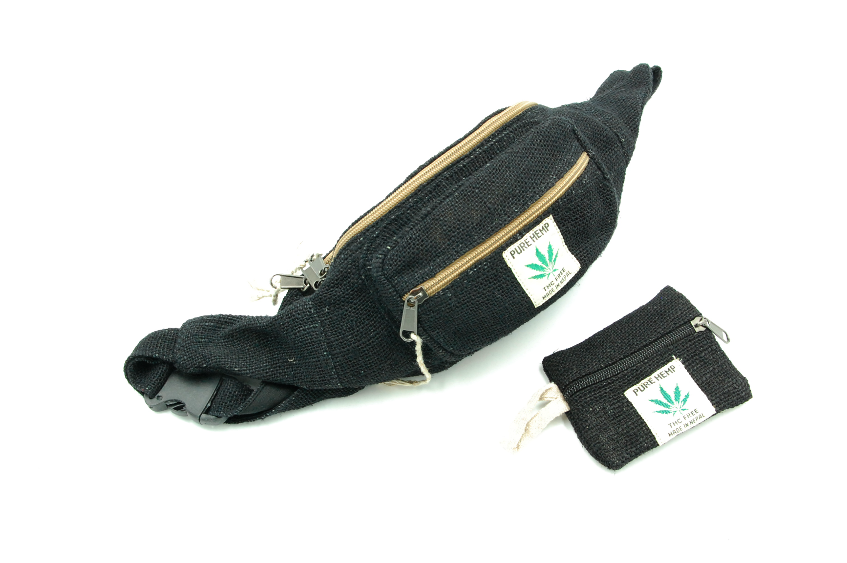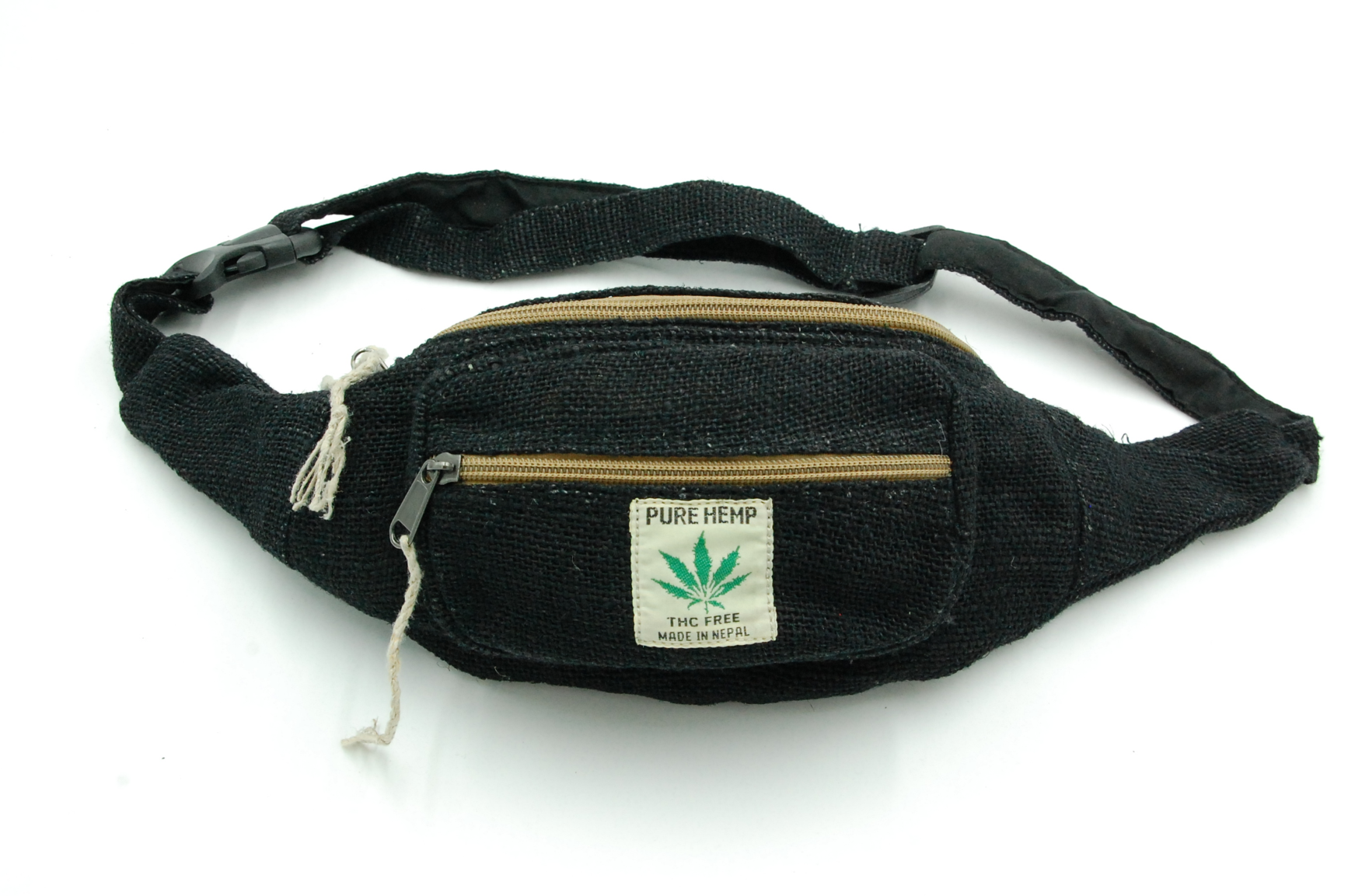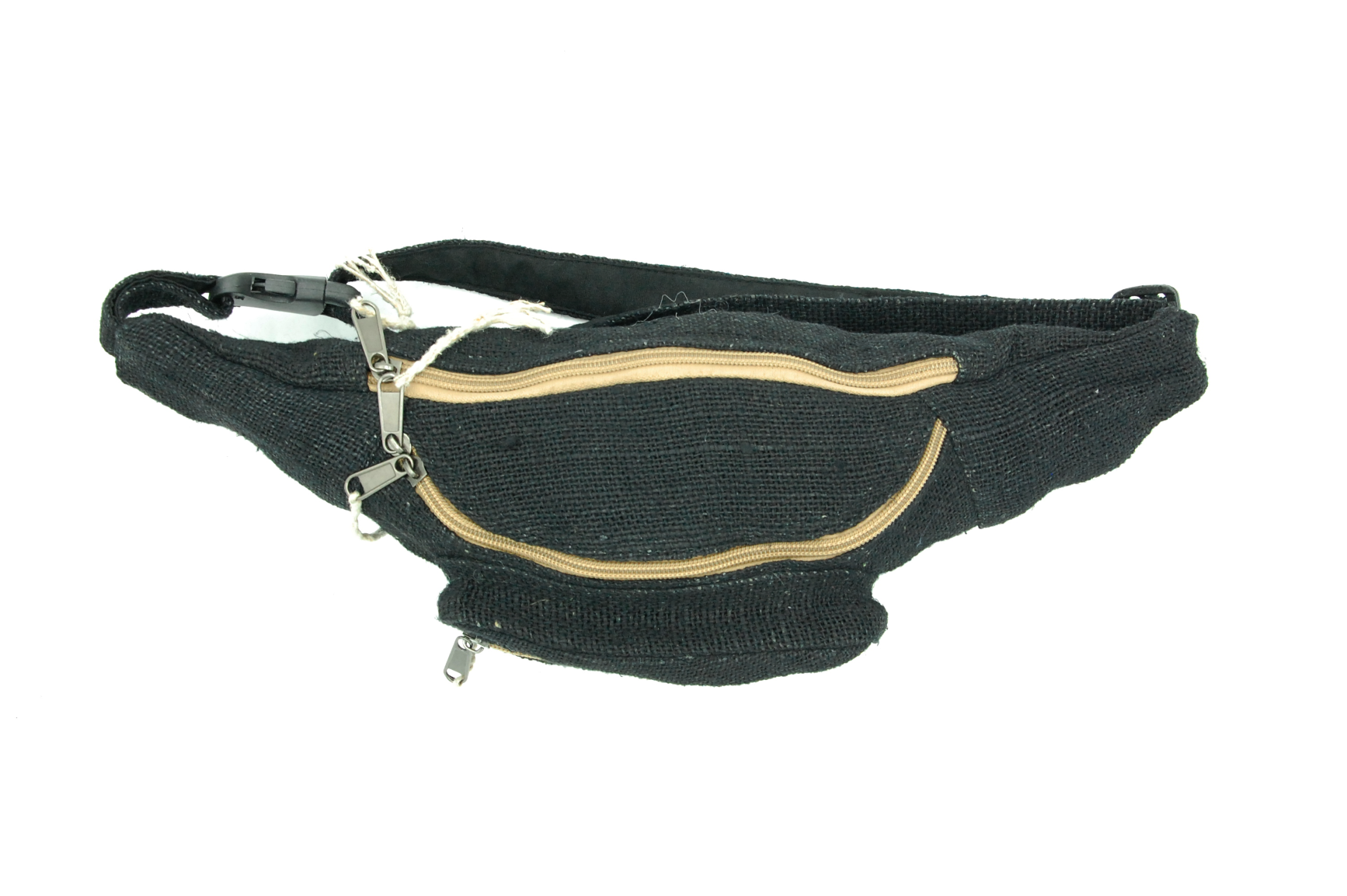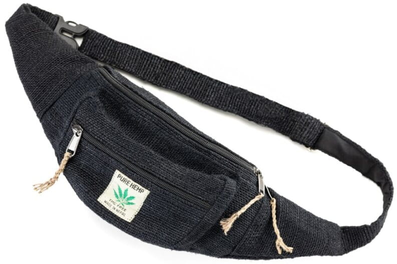 Biodrówka wykonana ręcznie w Nepalu z naturalnych włókien: konopi himalajskich oraz mocnej bawełny. Posiada dwie komory zapisane na wysokiej jakości zamek błyskawiczny oraz regulowany pasek (maksymalny obwód do 120 cm). Wnętrze wykończone jest bawełnianą podszewką.