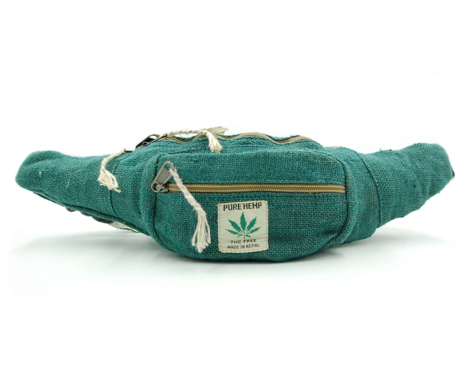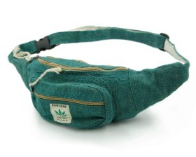 Biodrówka wykonana ręcznie w Nepalu z naturalnych włókien: konopi himalajskich oraz mocnej bawełny. Posiada dwie komory zapisane na wysokiej jakości zamek błyskawiczny oraz regulowany pasek (maksymalny obwód do 120 cm). Wnętrze wykończone jest bawełnianą podszewką.