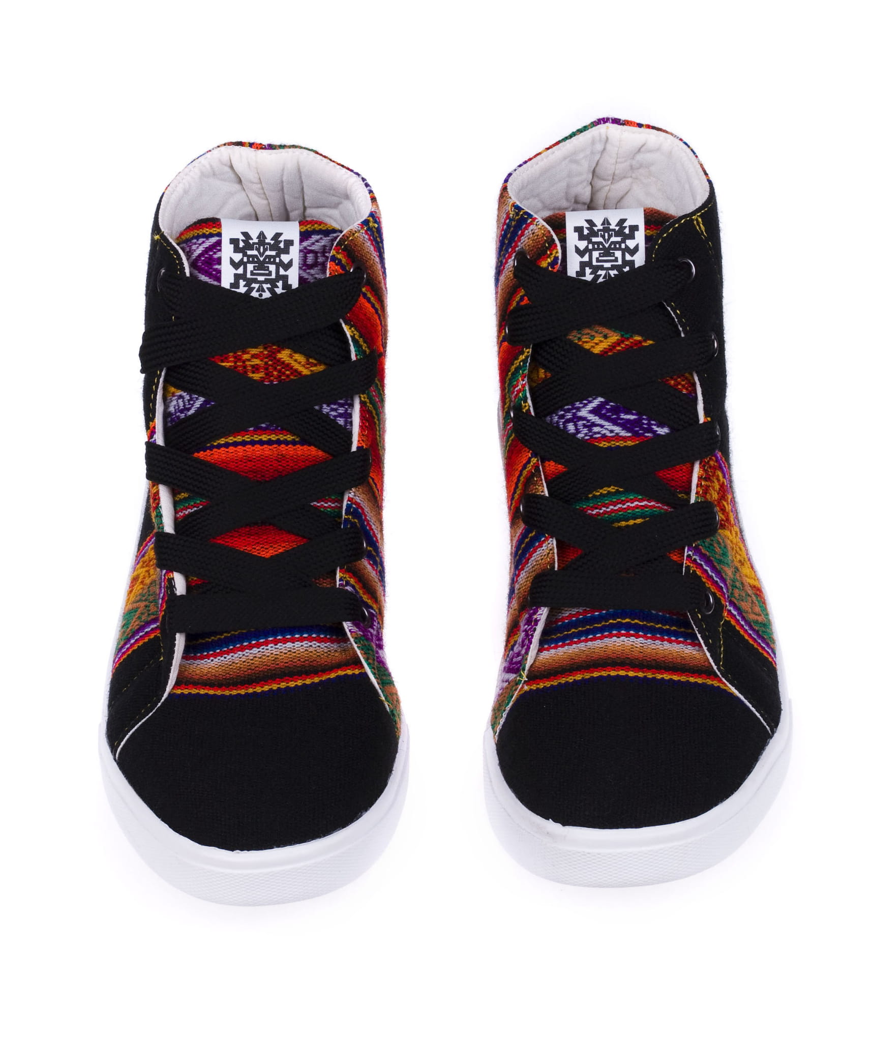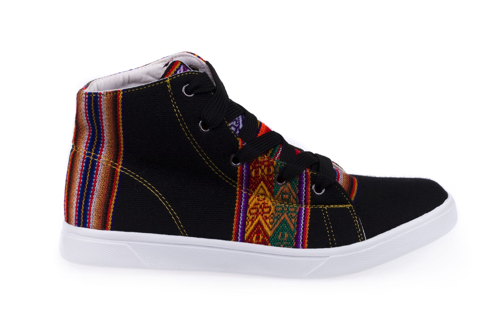 Oryginalne buty Inkamos wykonane z kolorowej tkaniny zdobionej tradycyjnymi wzorami kultury Inków. Materiał ten zwany Manta Peruana jest tkany na obszarze dawnego królestwa Inków od niepamiętnych czasów, kiedyś ręcznie a współcześnie z wykorzystaniem także bardzo prostych maszyn i narzędzi.